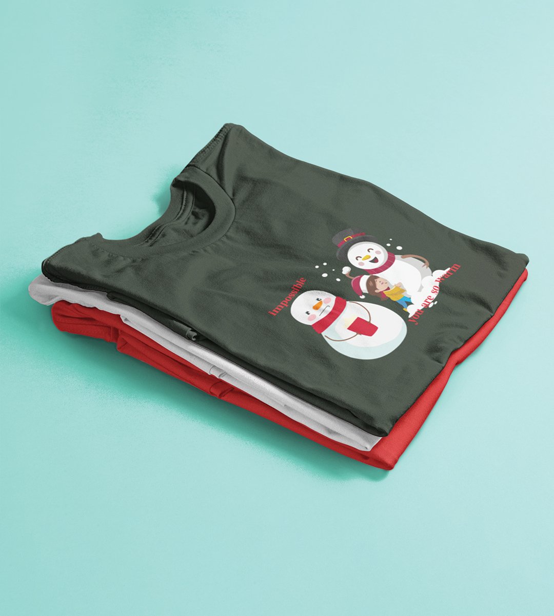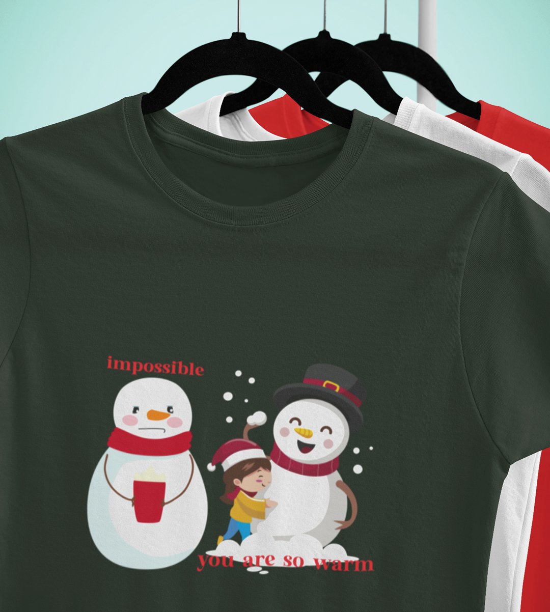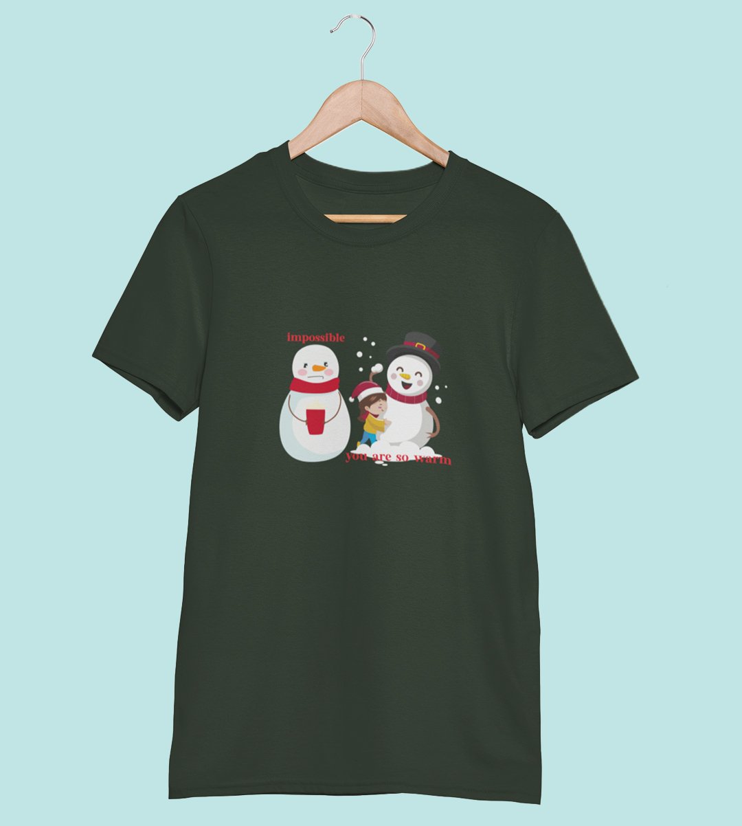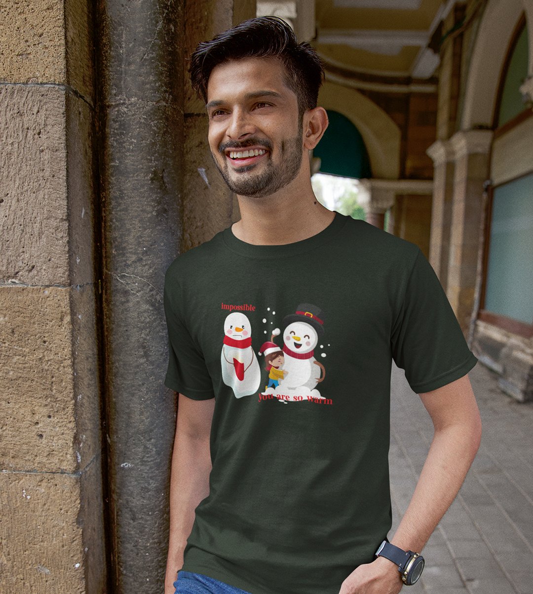 Warm Snowman : Beautifully Printed T-shirt (Green) Perfect Gift For Christmas Eve