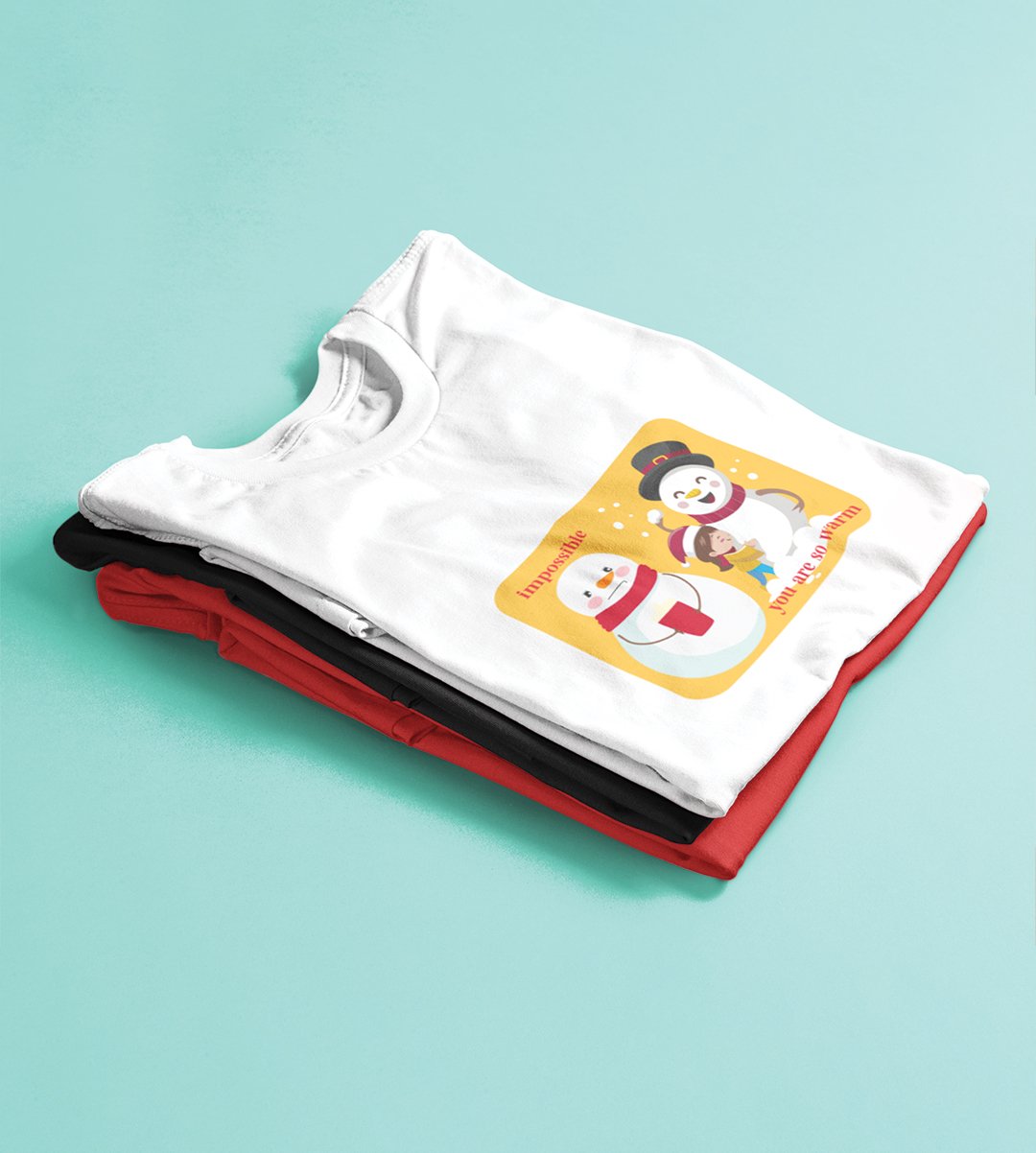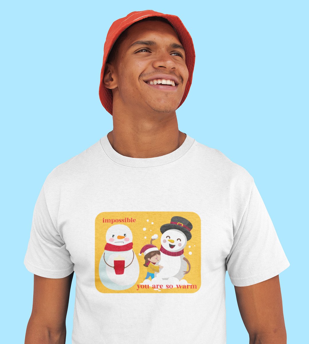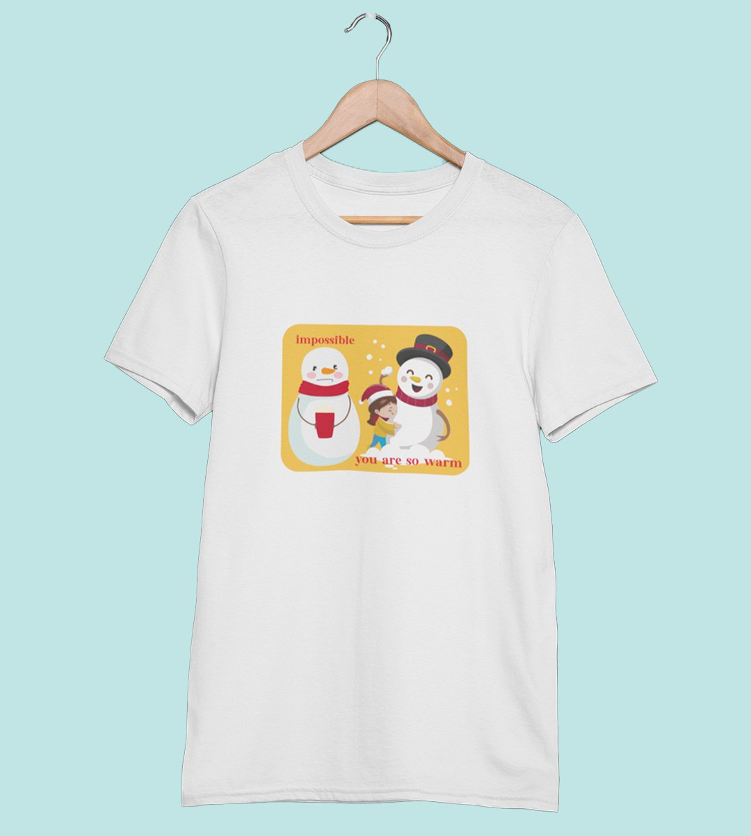 Warm Snowman : Beautifully Printed T-shirt (White) Perfect Gift For Christmas Eve