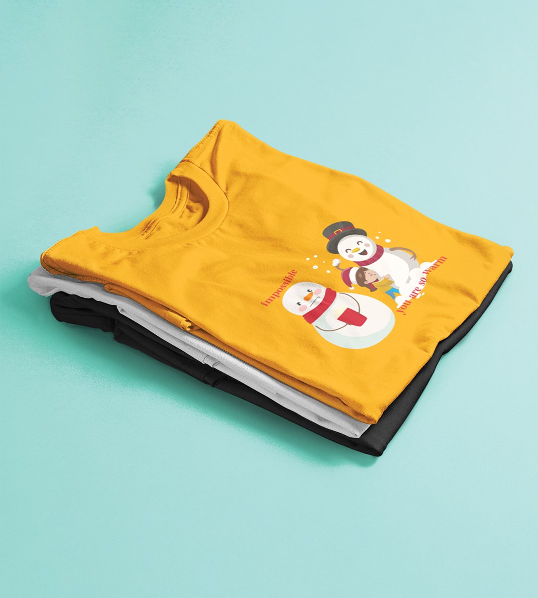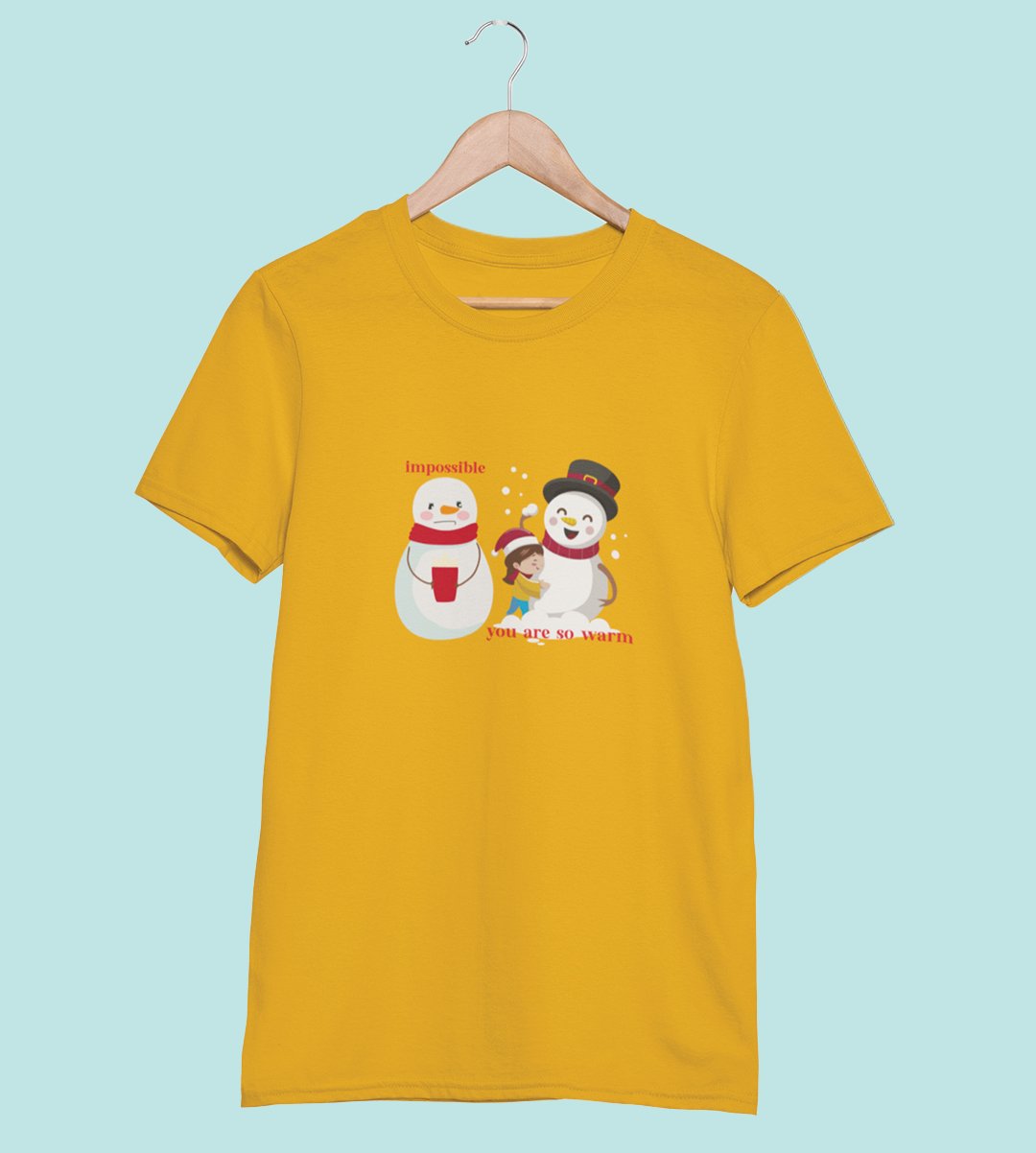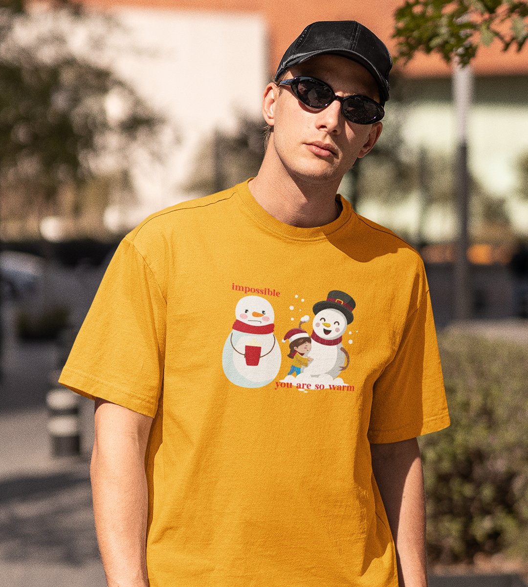 Warm Snowman : Beautifully Printed T-shirt (Yellow) Perfect Gift For Christmas Eve