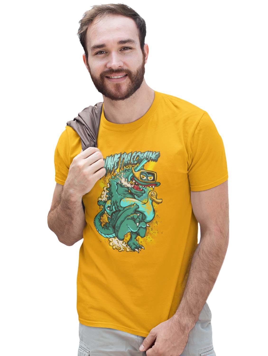 The Wave Monster Graphic Printed Yellow Cotton Round Neck Half Sleeves Tshirt