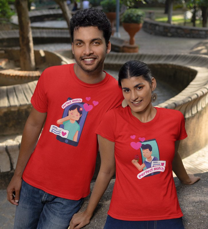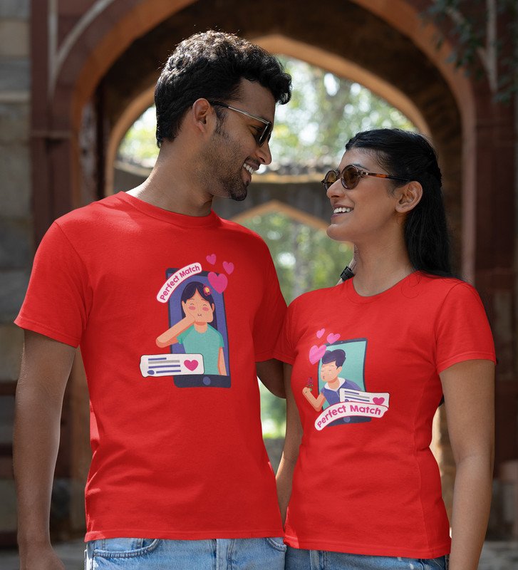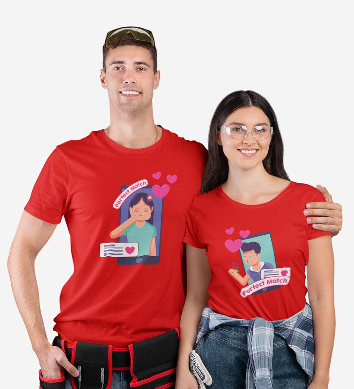 We Are A Perfect Match Couple Print (Red) T-shirts