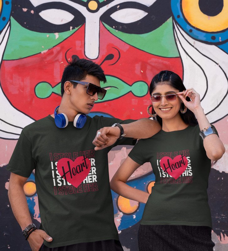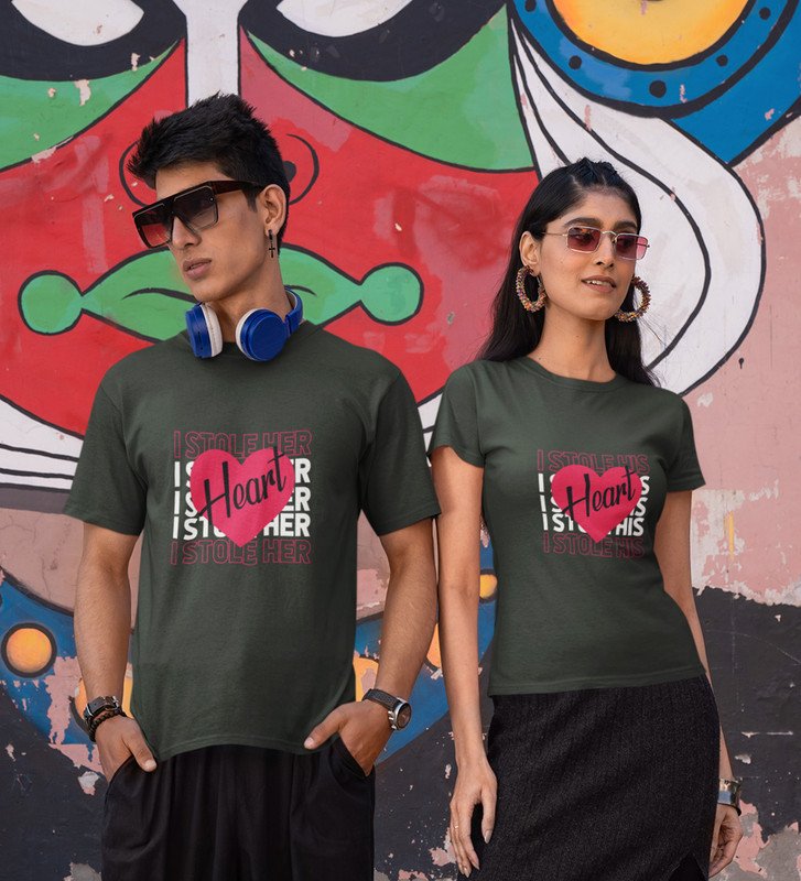 We Stole Each Other's Heart Printed Couple (green) T-shirts