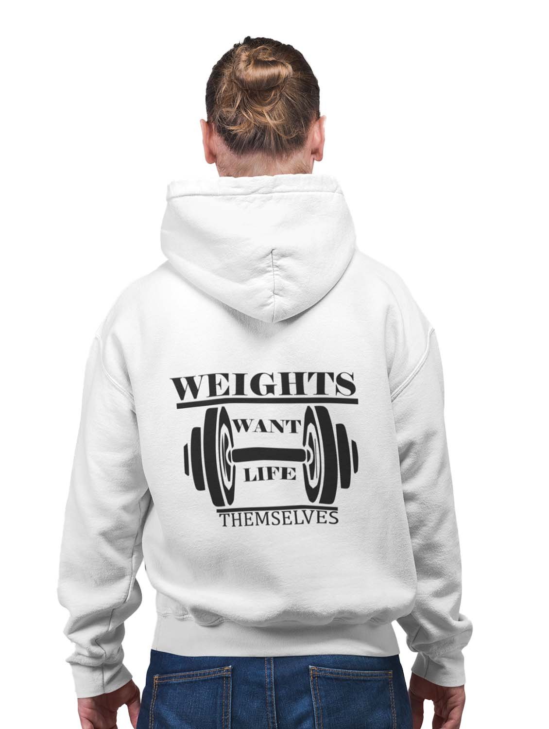 Weights Want Life Themselves printed artswear white hoodies for winter casual wear specially for Men