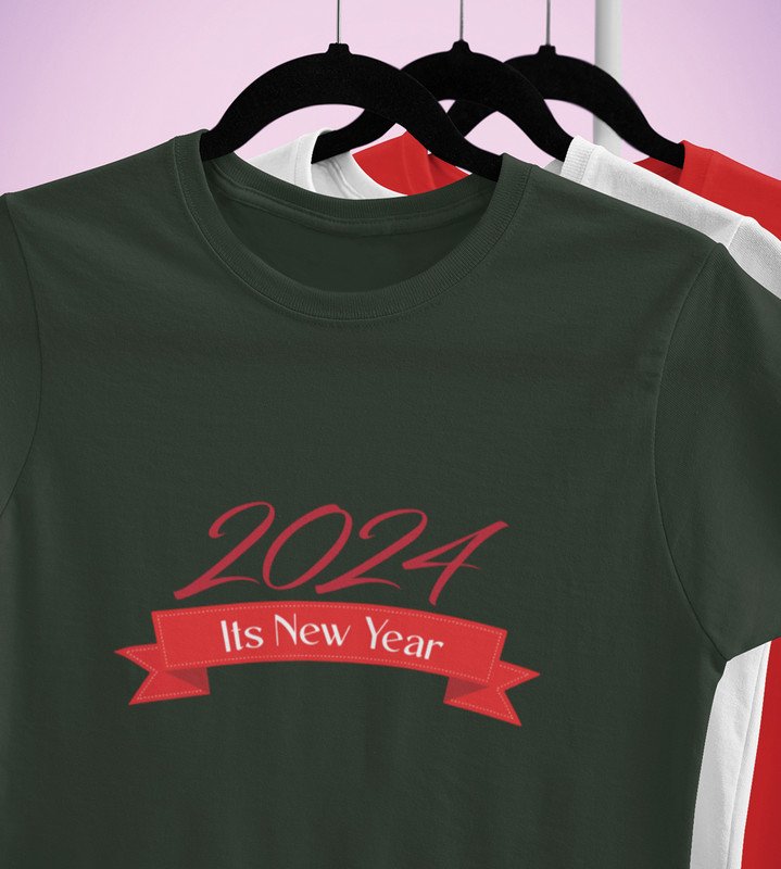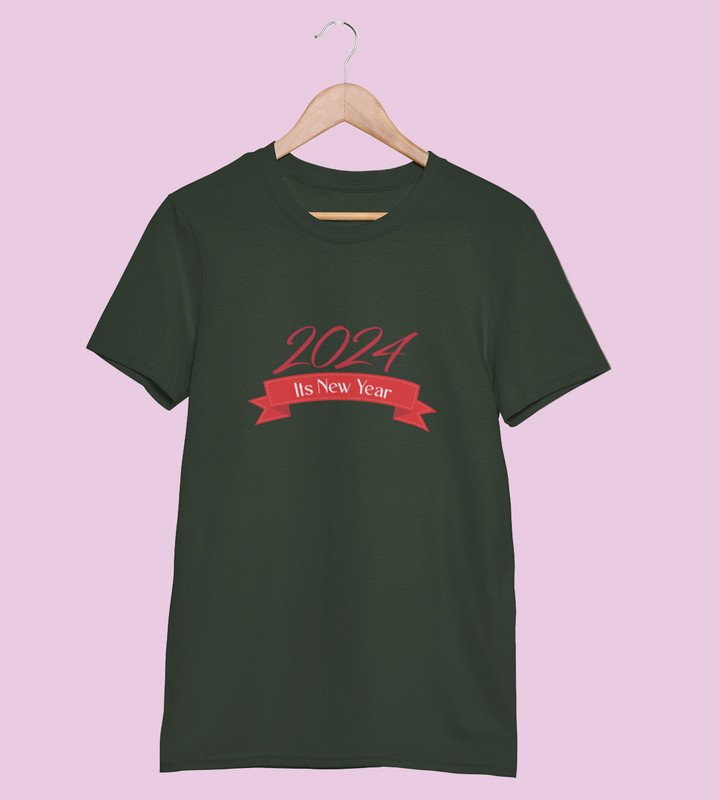 Welcome 2024Green Graphics Printed T-shirt For Mens On New Year Theme Best Gift For New Year