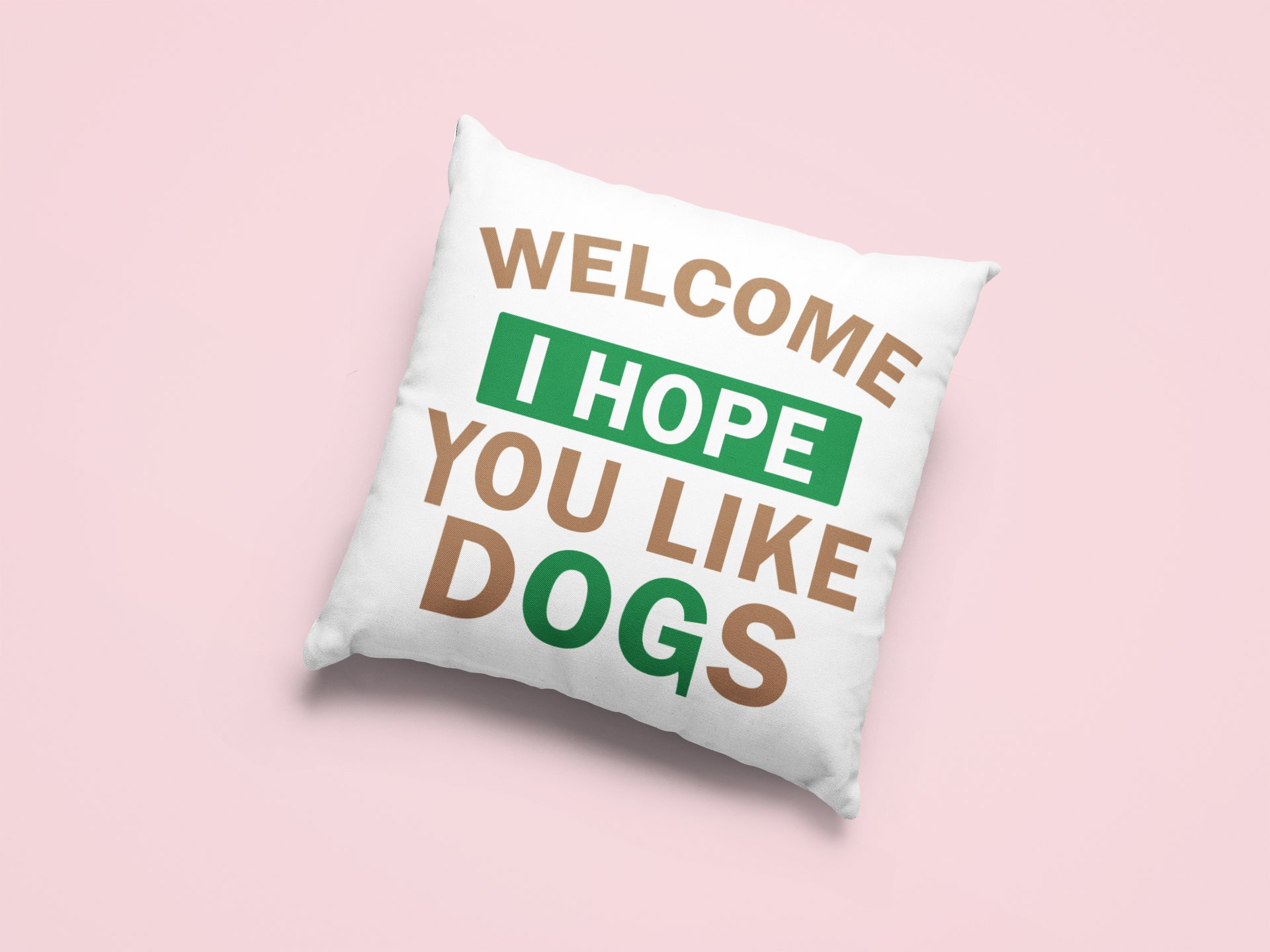 Welcome i hope you like dogs -Printed Pillow Covers For Pet Lovers(Pack Of Two)