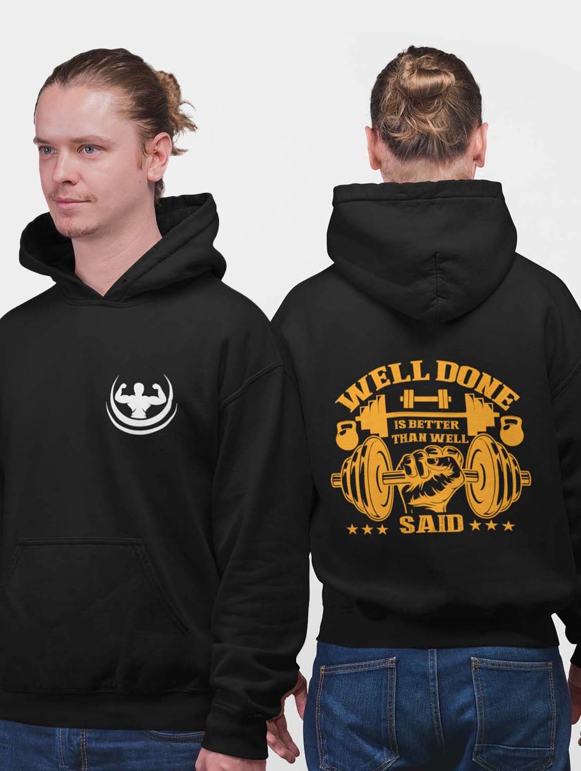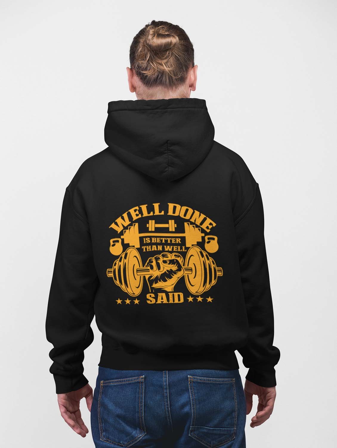Well Done Is Better Than printed artswear black hoodies for winter casual wear specially for Men