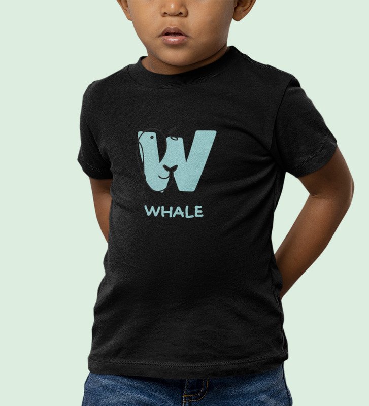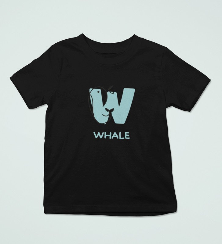 Whale, Boys Printed Crew Neck Tshirt (Black) Printed Cotton Tshirt for Boys