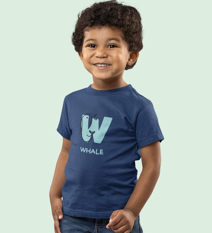 Whale, Boys Printed Crew Neck Tshirt (Navy blue) Printed Cotton Tshirt for Boys