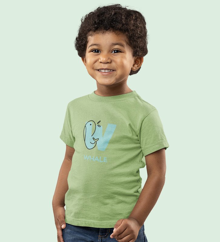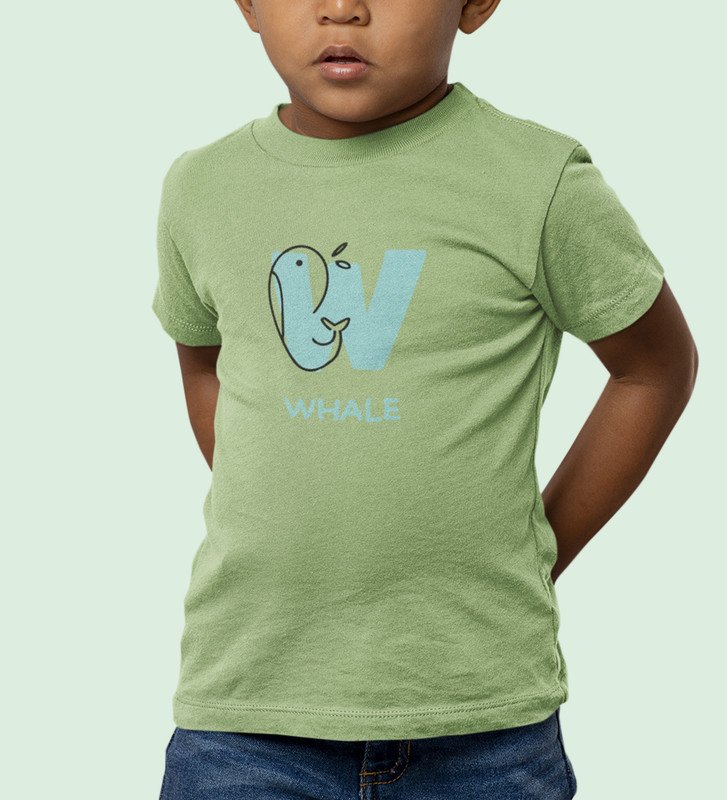 Whale, Boys Printed Crew Neck Tshirt (Olive) Printed Cotton Tshirt for Boys