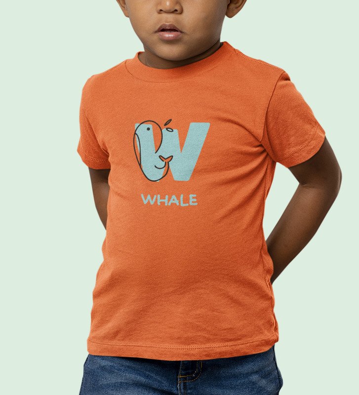 Whale, Boys Printed Crew Neck Tshirt (Orange) Printed Cotton Tshirt for Boys