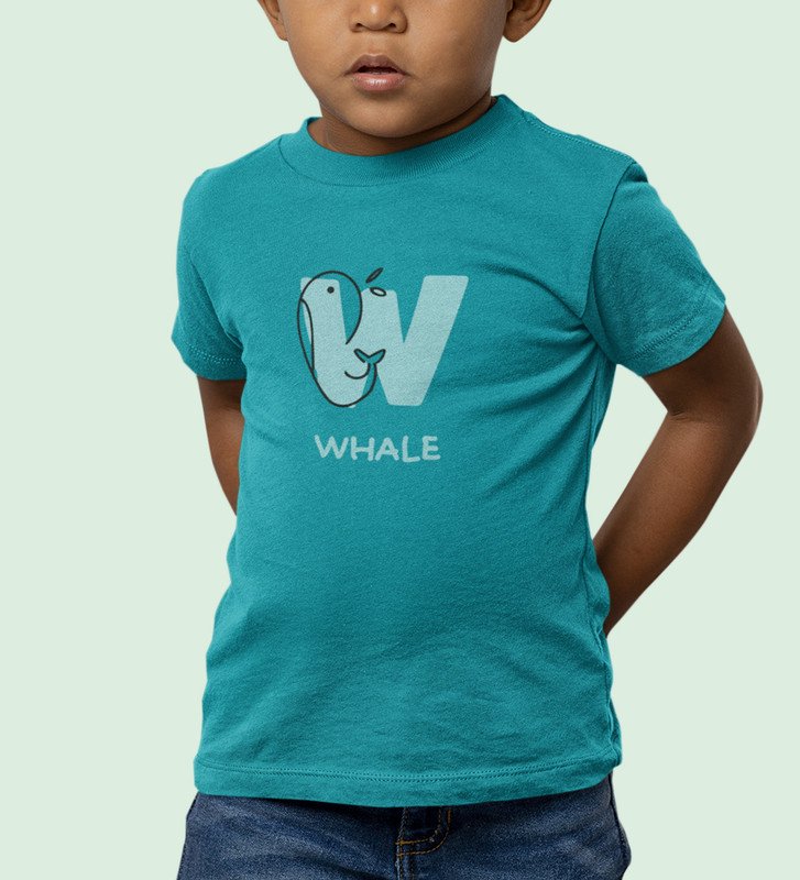 Whale, Boys Printed Crew Neck Tshirt (Teal) Printed Cotton Tshirt for Boys