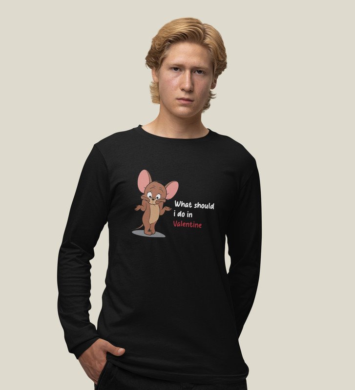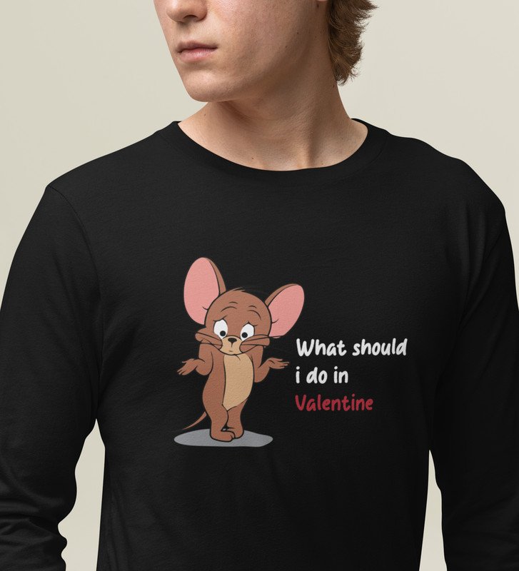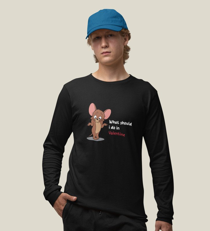What Should I Do In Valentine: Printed (black) Full Sleeve T-Shirt For Singles
