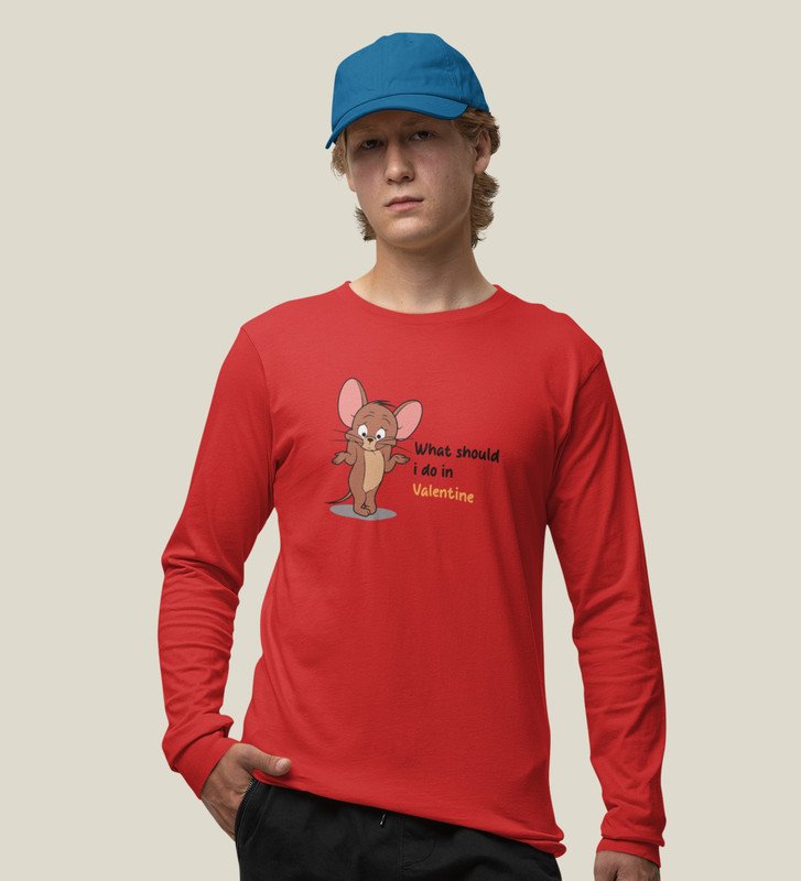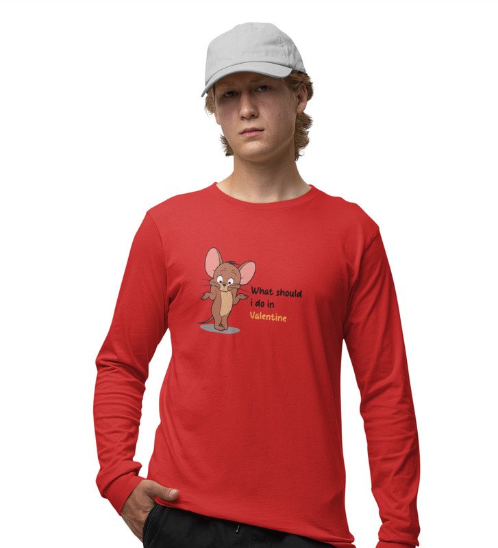 What Should I Do In Valentine: Printed (red) Full Sleeve T-Shirt For Singles