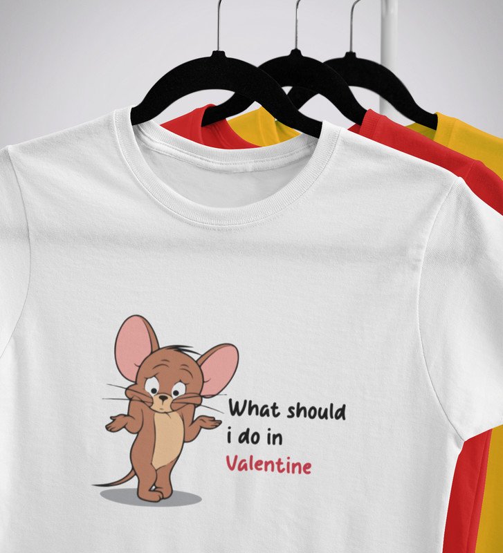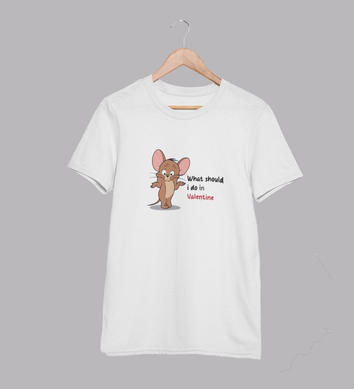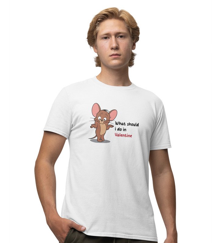 What Should I Do In Valentine: Printed (white) T-Shirt For Singles
