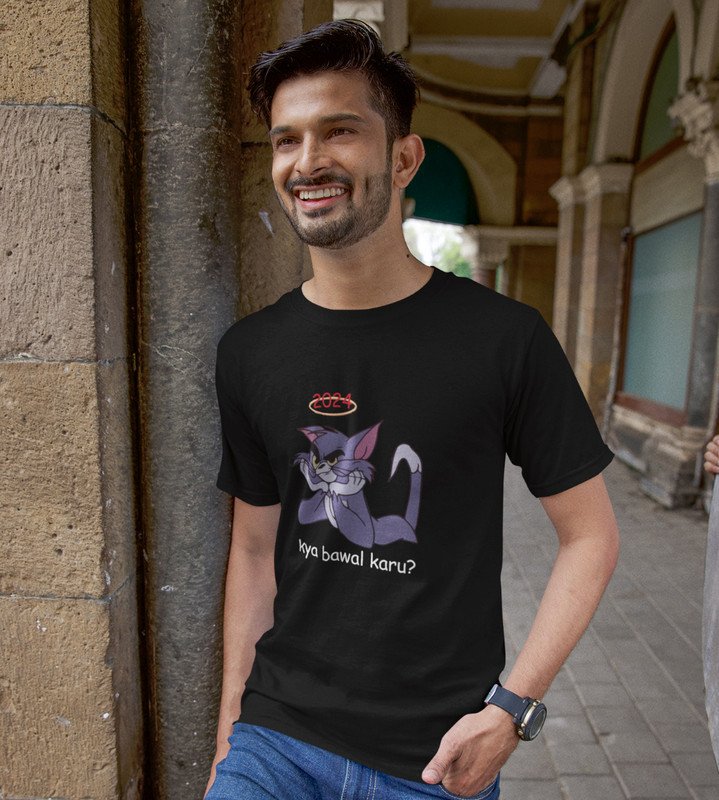 5. What To Say? Black Men Printed T-shirt For Mens Boys