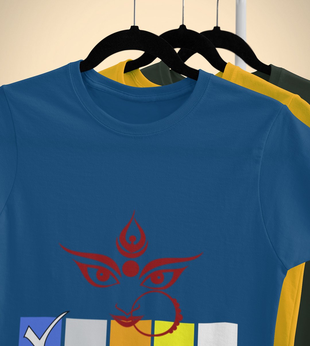 Navratri is a very auspicious festival for hindus. It takes place at the beginning of October and sometimes September. Enjoy the 9 days of festivities with full zeal and make yourself submerged in the love of Maa Durga. Navratri is also known as Durga Puja. And with this Tees, you can shine like a star during this festive season with our navratri themed cotton half sleeved Tshirts. You can pair our t-shirts with trousers and denim of your choice and make it a weekday smart casual or weekend wear. This is durable. This tshirt is smooth and soft which makes you comfortable to wear during all seasons. The printing in it is durable and odourless. It has five sizes, S,M,L,XL,XXL. The Tshirt colour is intact even after repeated washes. It can be kept in your wardrobe and hangers. Please avoid washing mashine to clean this Tee, it may affect the print. Hand wash only. We have brought you many navratri related designs printed on our different colour Tshirts to choose from. Grab it now.