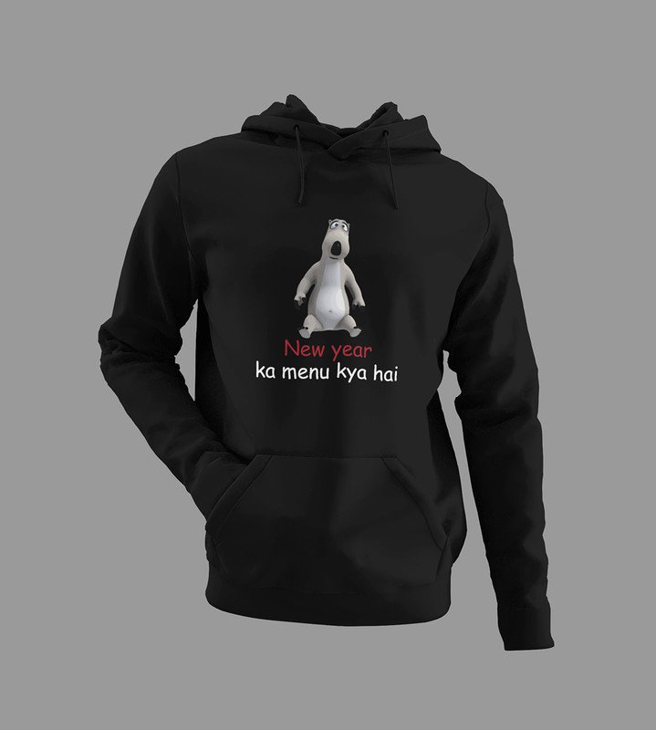 What's There For New Year, Black New Year Printed Hoodies For Mens