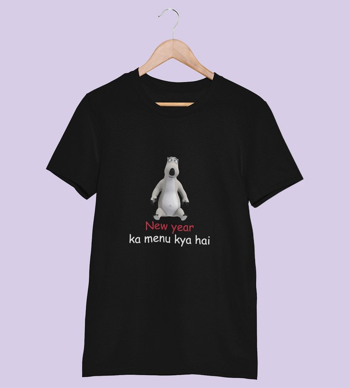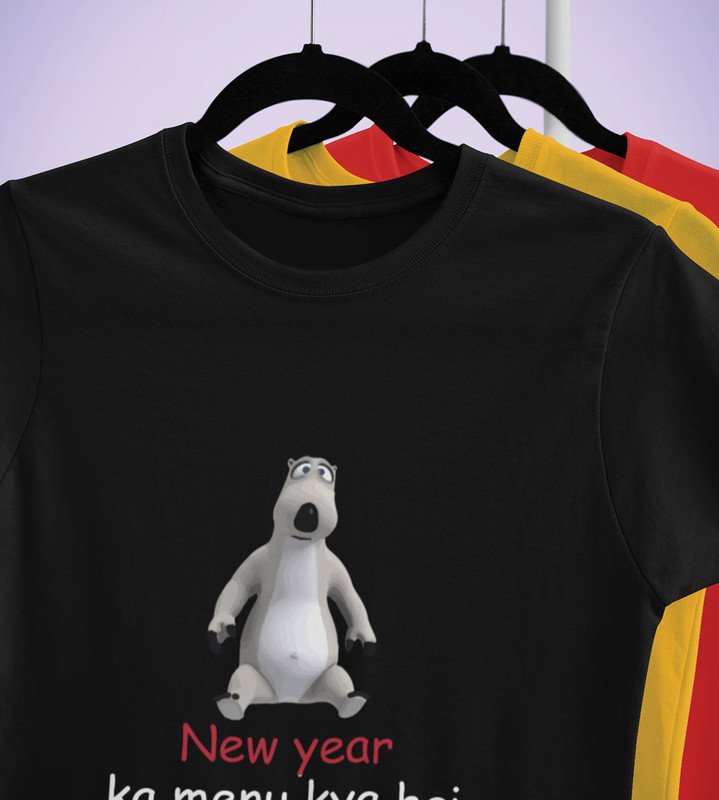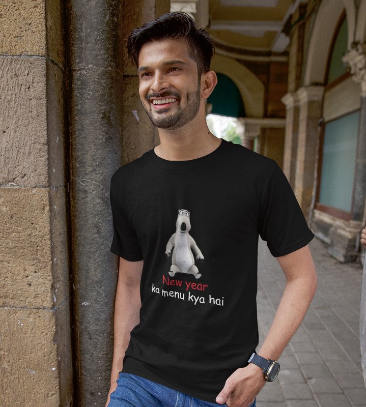 What's There For New YearBlack New Year Printed T-shirt For Mens
