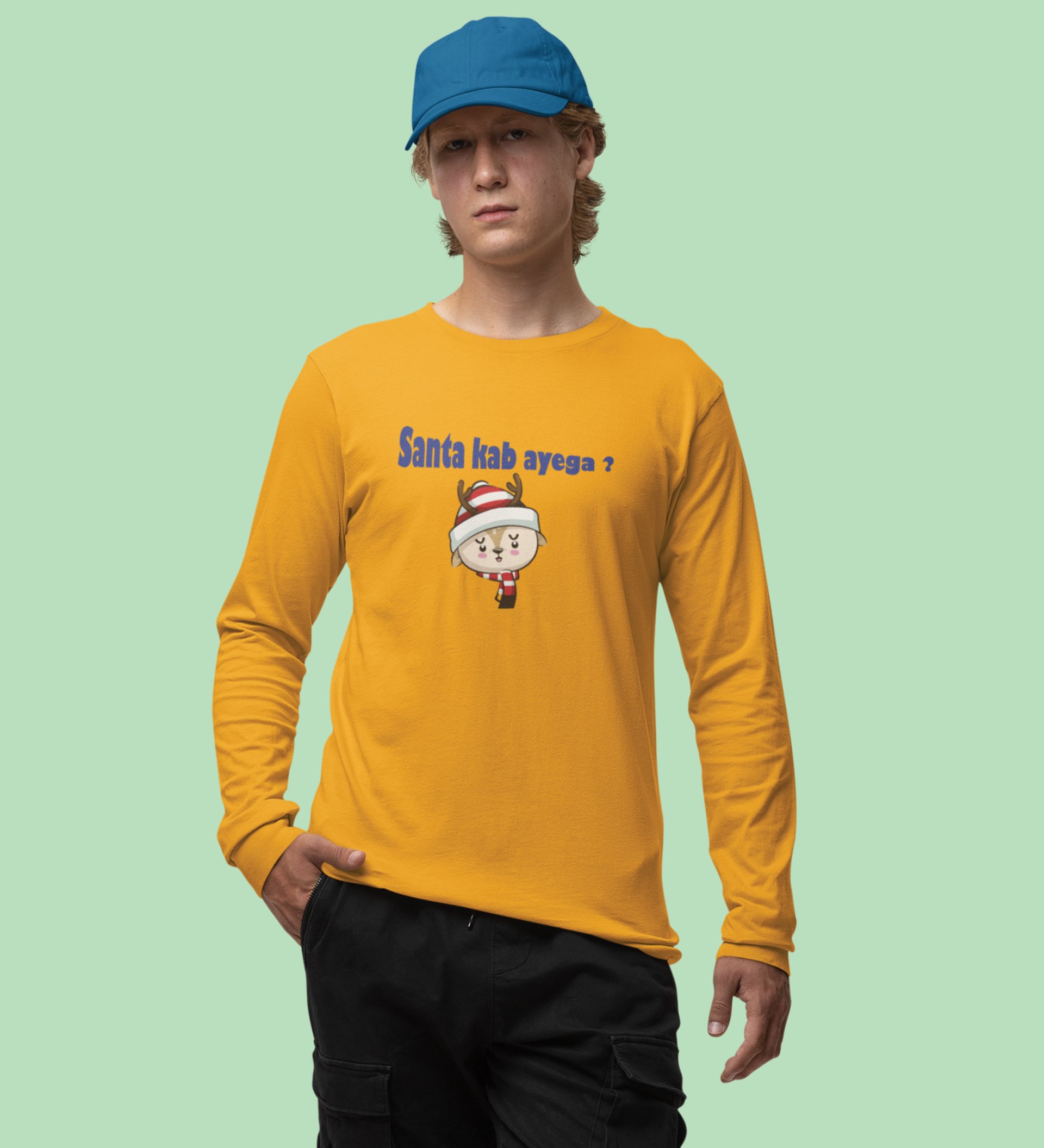 When Will The Santa Come: Christmas YellowFull Sleeve T-shirt BestFull Sleeve T-shirt Gifting Kids Friends