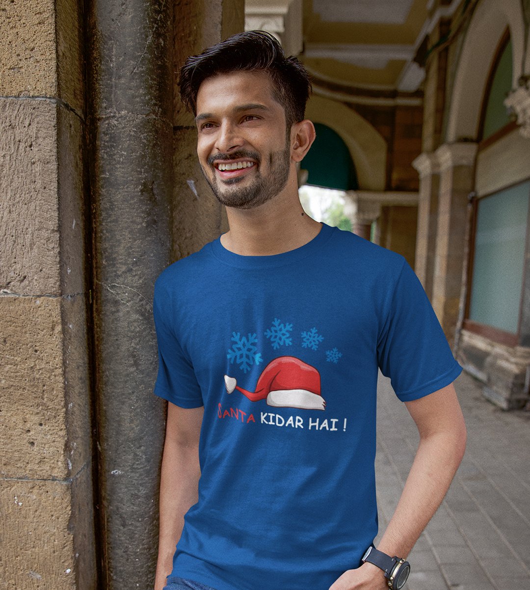 Where's Santa? : Best Printed T-shirt For Christmas (Blue)Most Liked Gift For Boys Girls