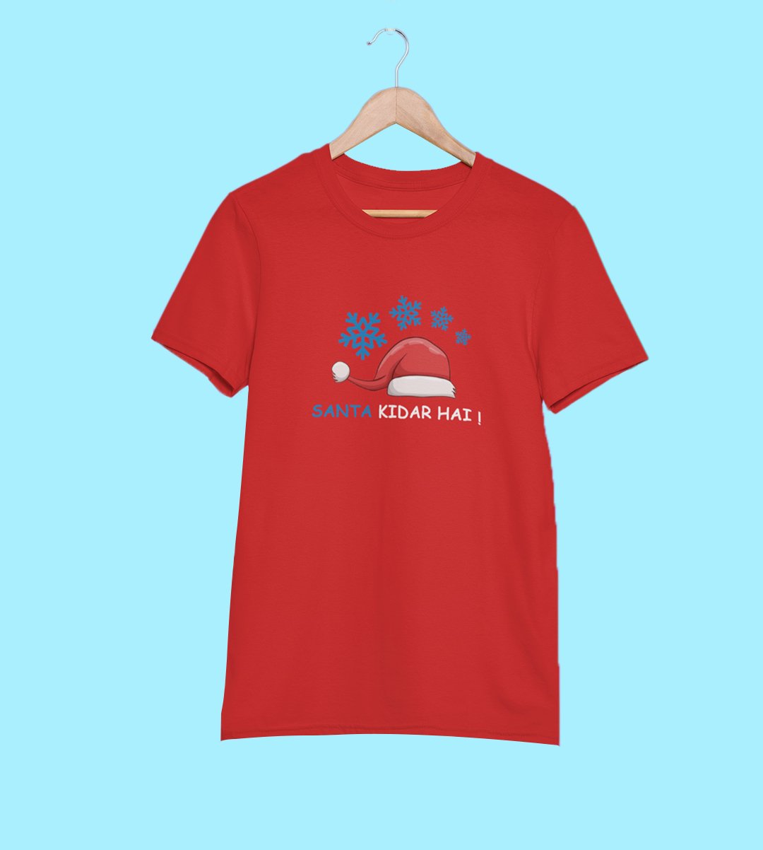 Where's Santa? : Best Printed T-shirt For Christmas (Red)Most Liked Gift For Boys Girls