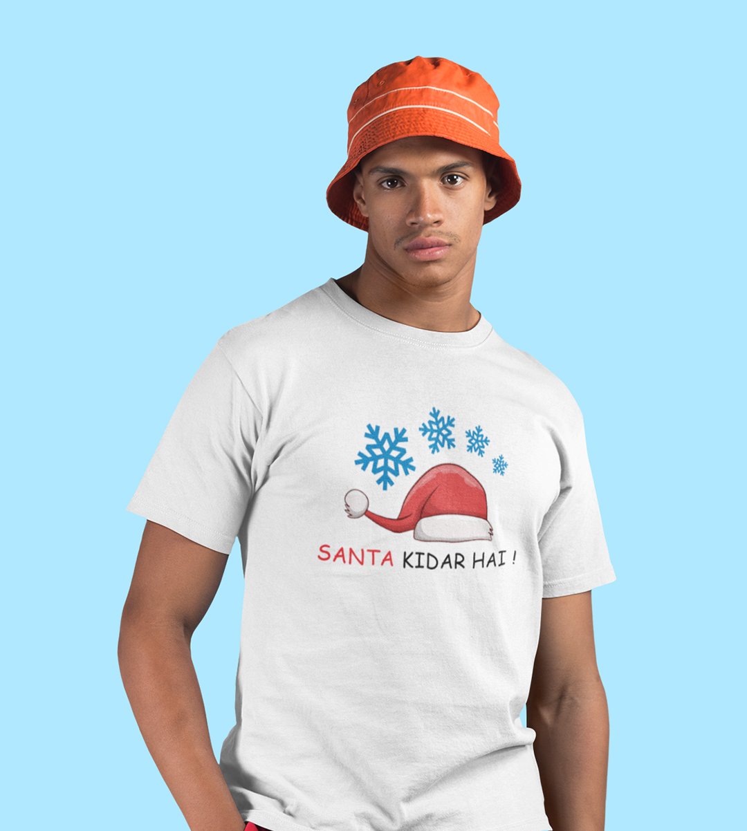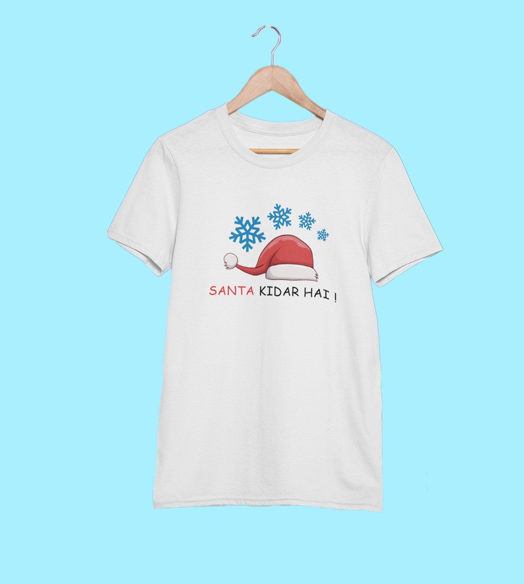 Where's Santa? : Best Printed T-shirt For Christmas (White)Most Liked Gift For Boys Girls