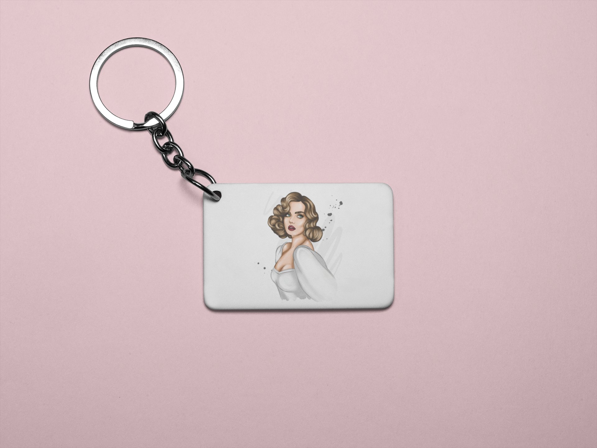White dress woman - Printed animated creature Keychains For Animation Lovers(Pack of 2)