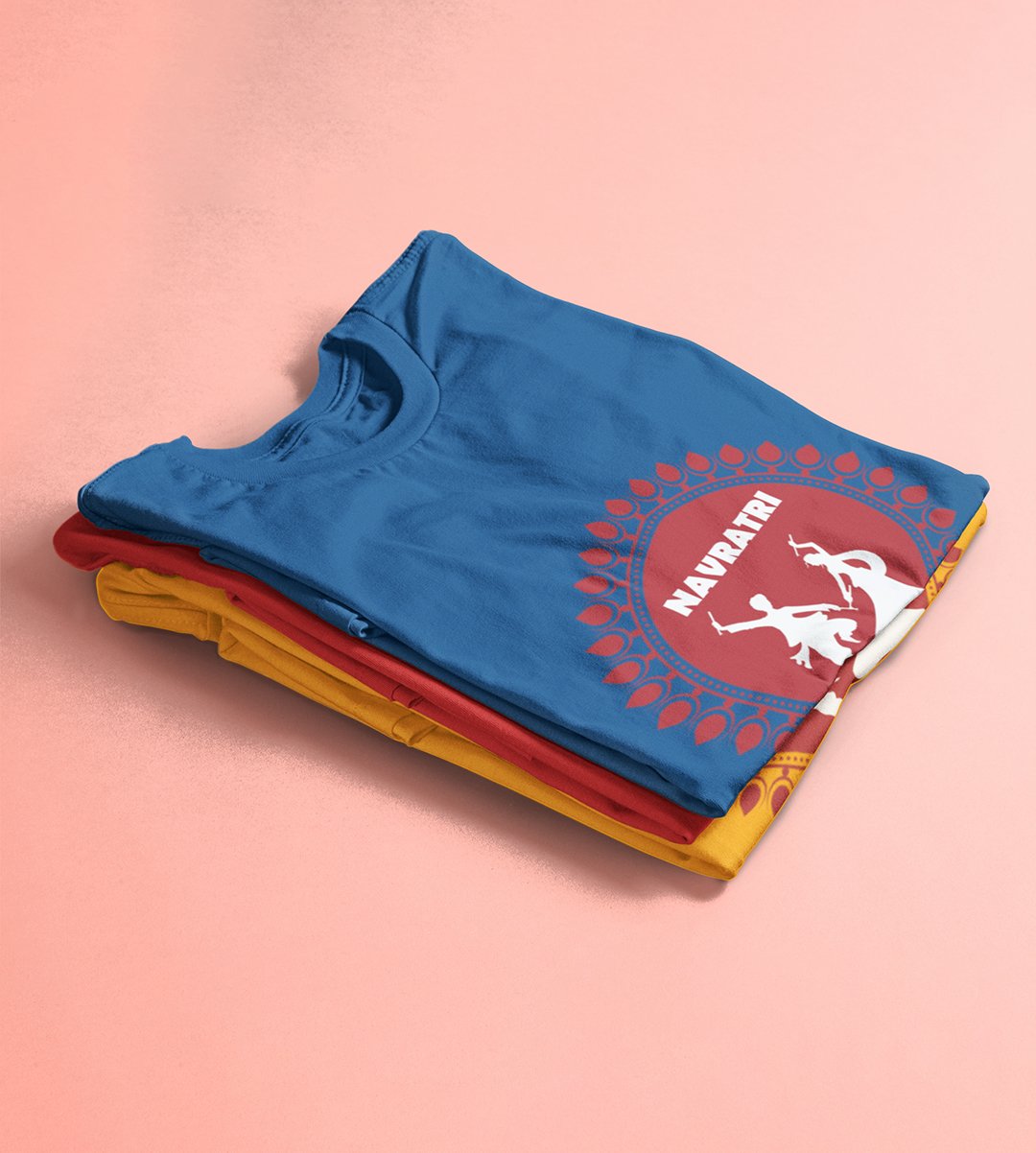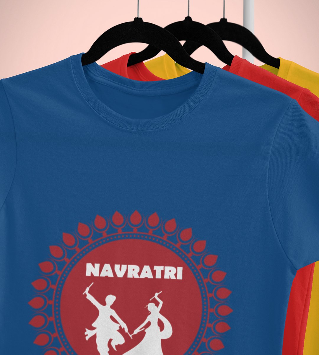 Navratri is a very auspicious festival for hindus. It takes place at the beginning of October and sometimes September. Enjoy the 9 days of festivities with full zeal and make yourself submerged in the love of Maa Durga. Navratri is also known as Durga Puja. And with this Tees, you can shine like a star during this festive season with our navratri themed cotton half sleeved Tshirts. You can pair our t-shirts with trousers and denim of your choice and make it a weekday smart casual or weekend wear. This is durable. This tshirt is smooth and soft which makes you comfortable to wear during all seasons. The printing in it is durable and odourless. It has five sizes, S,M,L,XL,XXL. The Tshirt colour is intact even after repeated washes. It can be kept in your wardrobe and hangers. Please avoid washing mashine to clean this Tee, it may affect the print. Hand wash only. We have brought you many navratri related designs printed on our different colour Tshirts to choose from. Grab it now.