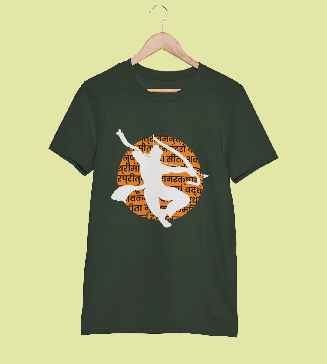 White shadowed Shree Ram printed unisex adults round neck cotton half-sleeve black tshirt specially for Navratri festival/ Durga puja