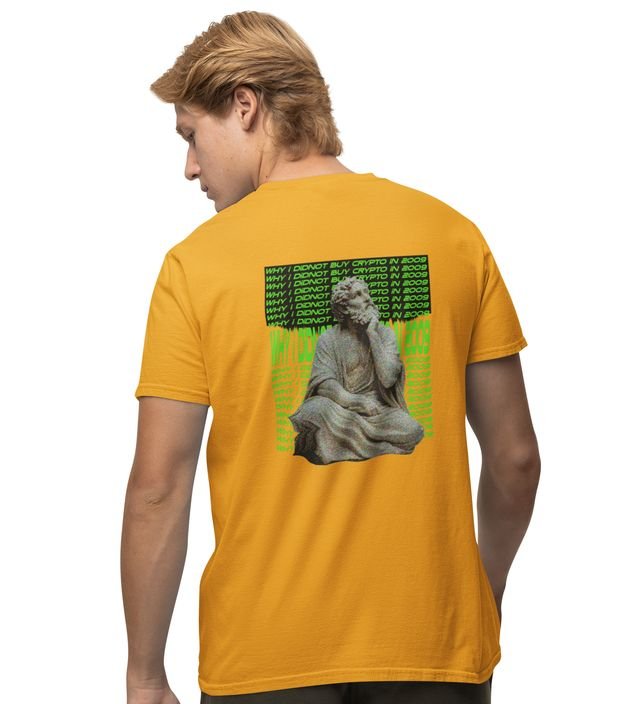 Why? The Regret Wings Yellow Round Neck Cotton Half Sleeved Men's T-Shirt with Printed Graphics