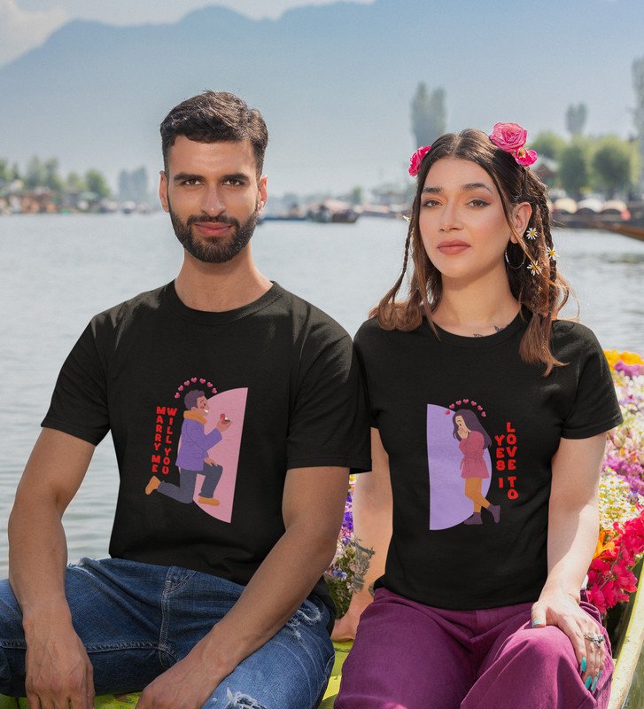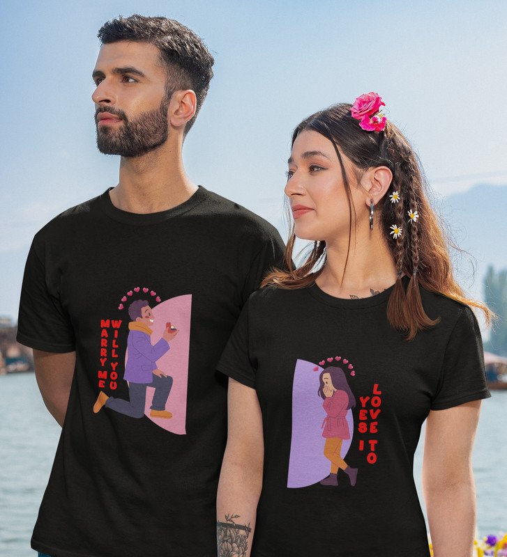 Will You Marry Me? Printed (Black) T-shirts For Couples