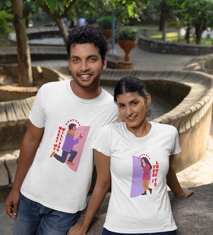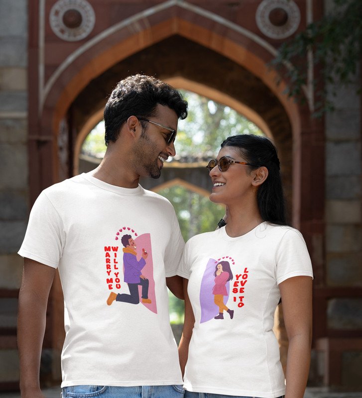 Will You Marry Me? Printed (White) T-shirts For Couples