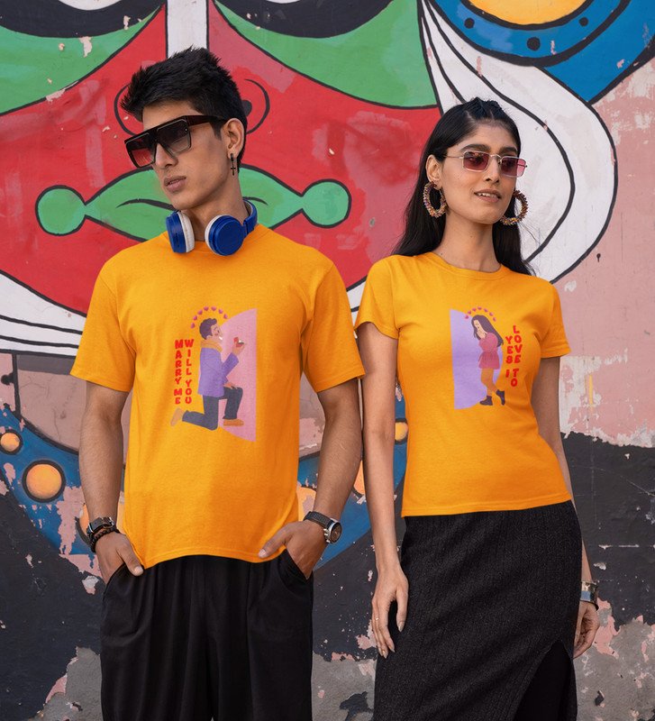 Will You Marry Me? Printed (Yellow) T-shirts For Couples