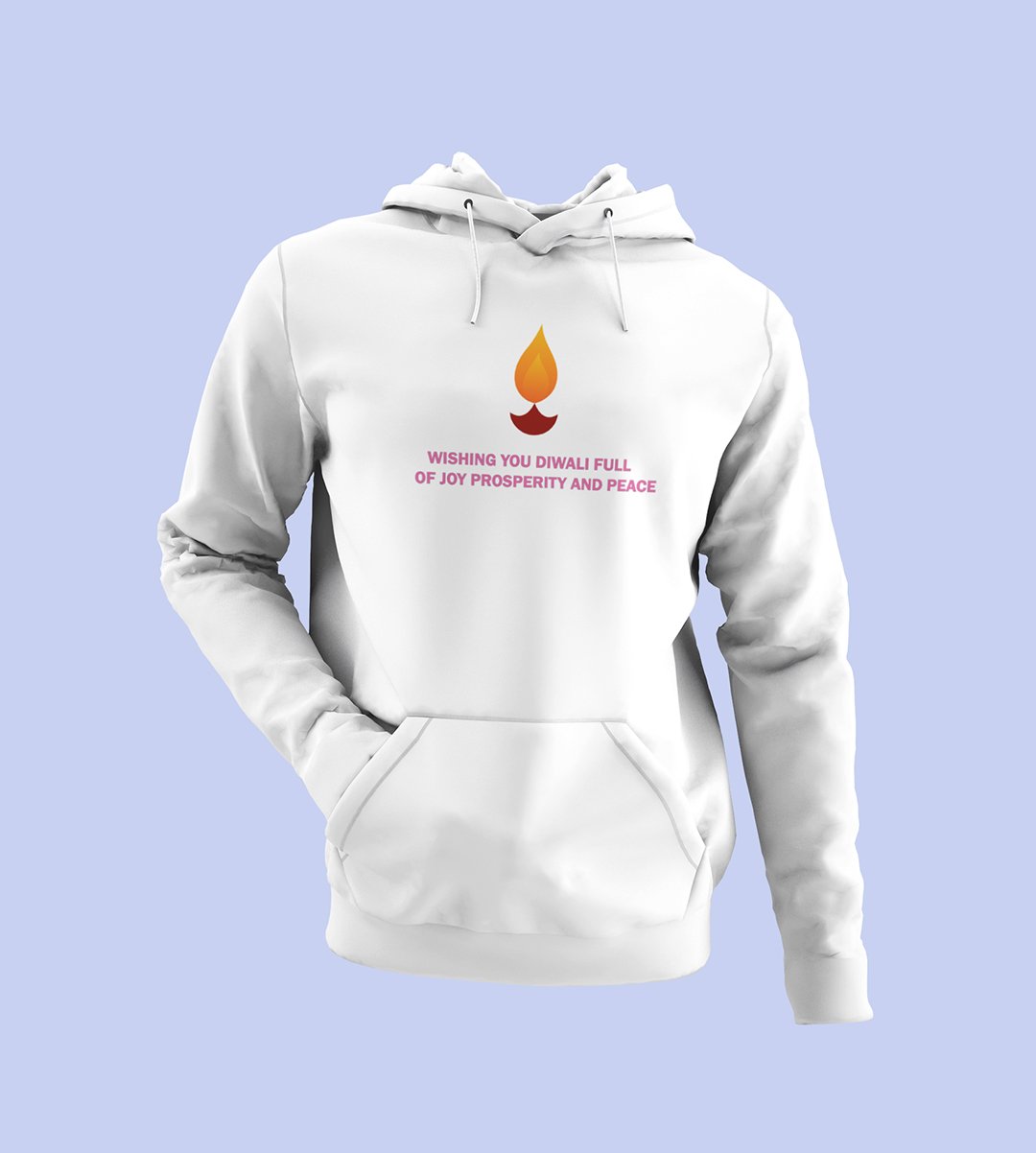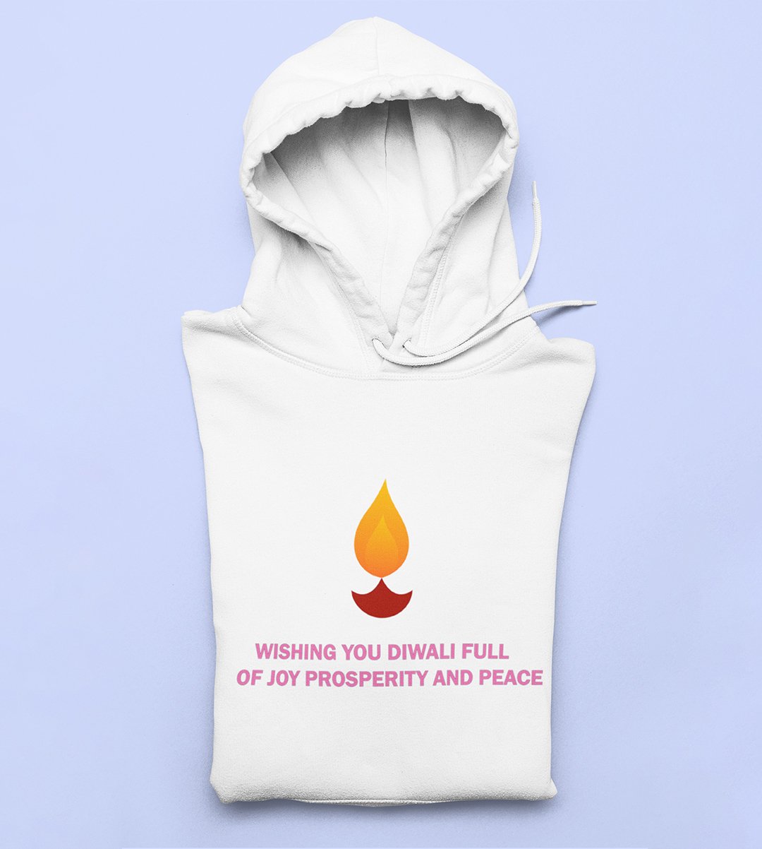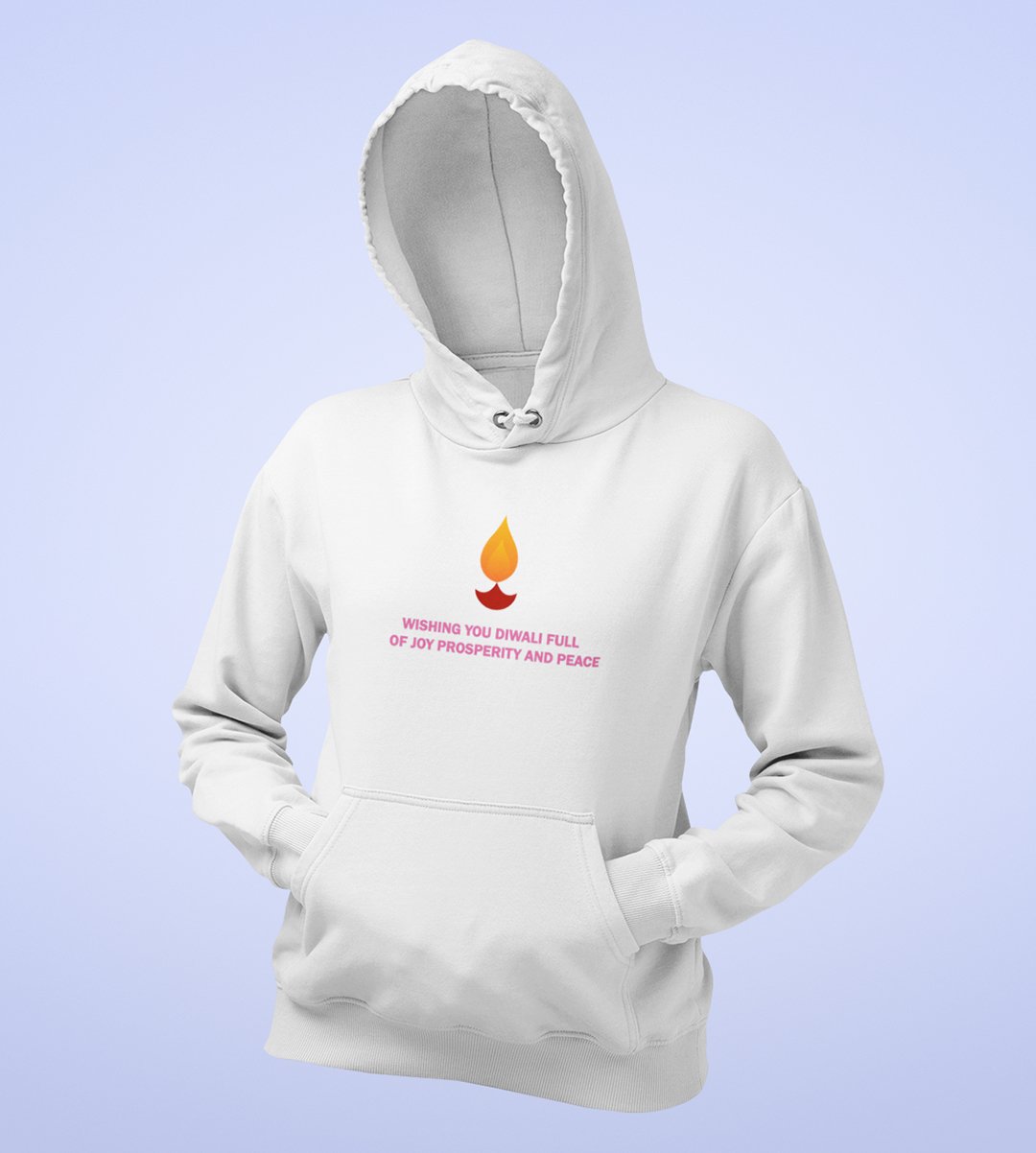 Wishing you printed diwali themed White Hoodie specially for diwali festival
