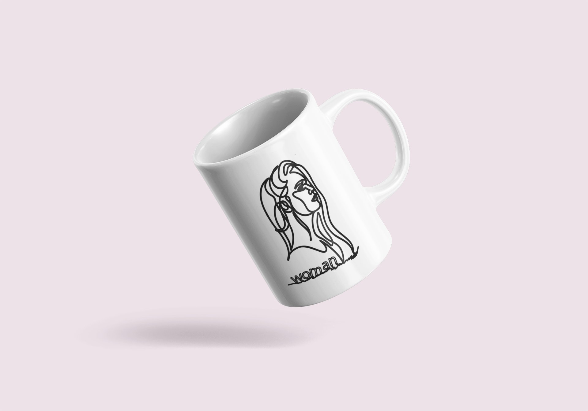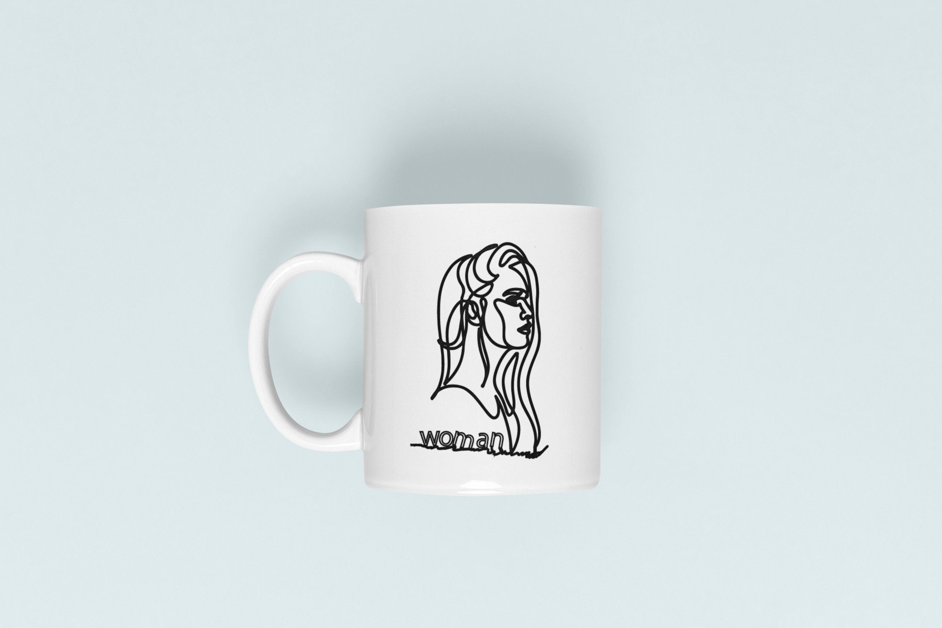 Woman - line art themed printed ceramic white coffee and tea mugs/ cups