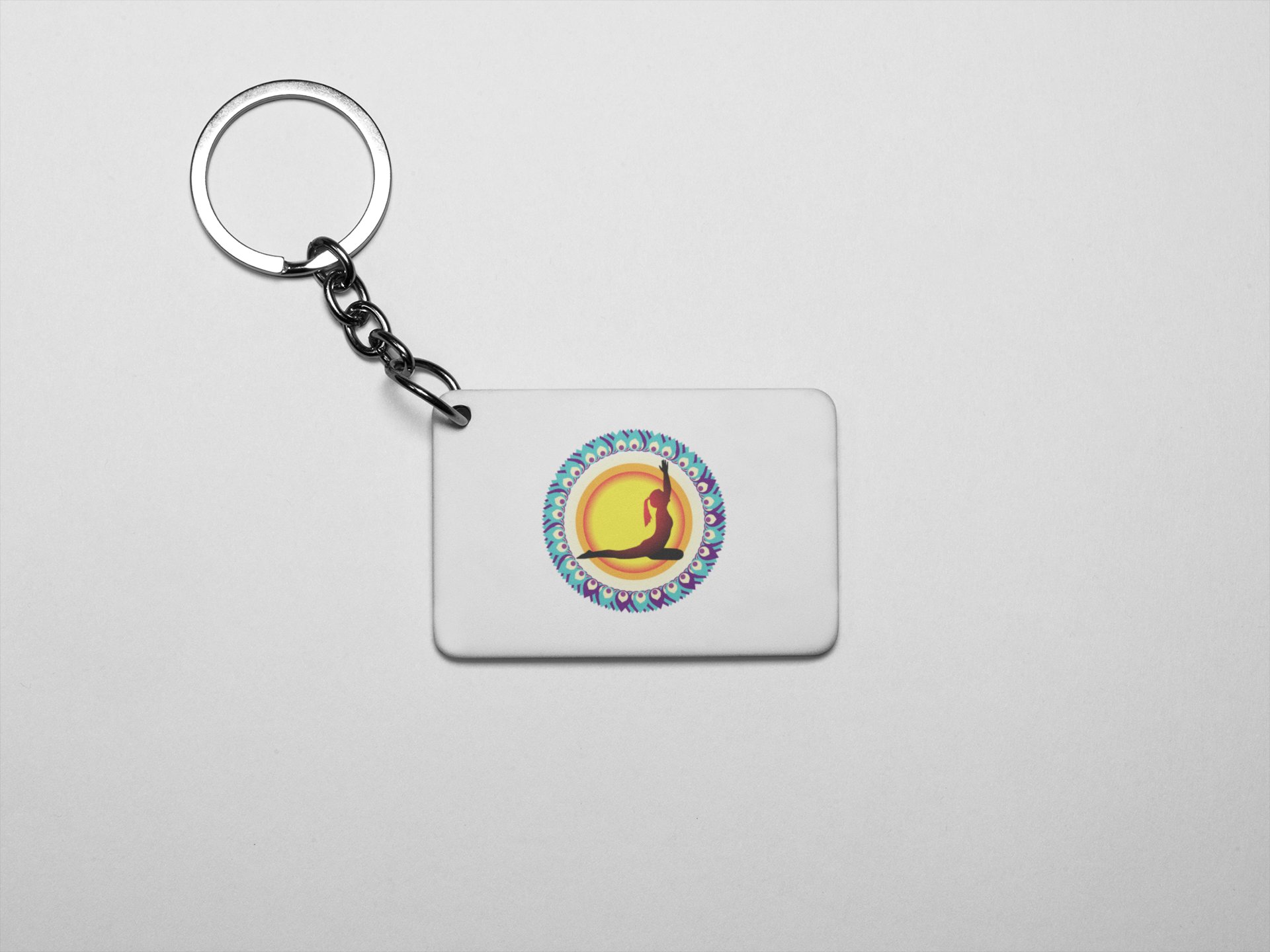Women Doing Yoga Sun Chakra in background - Printed Acrylic Keychains(Pack Of 2)