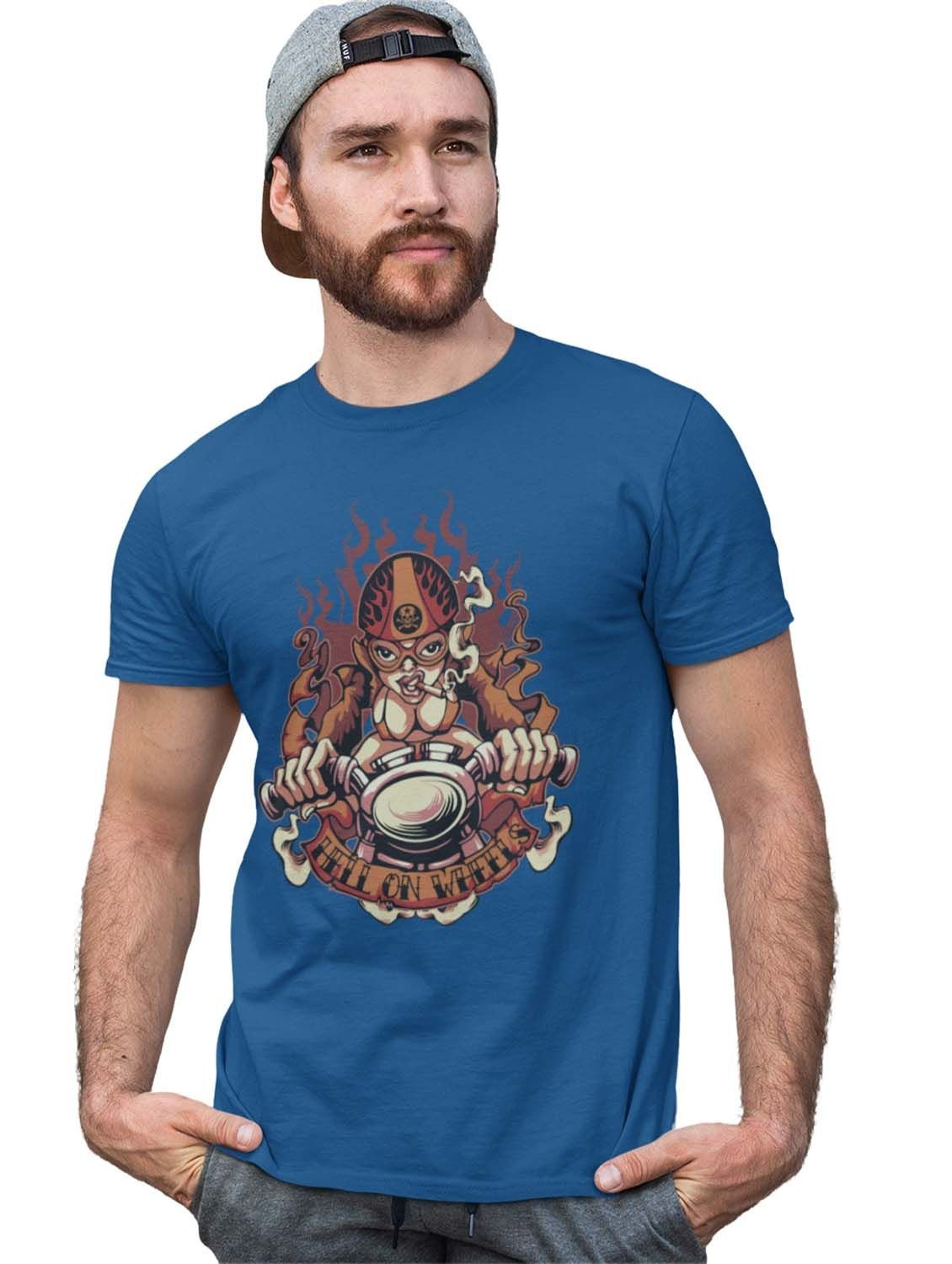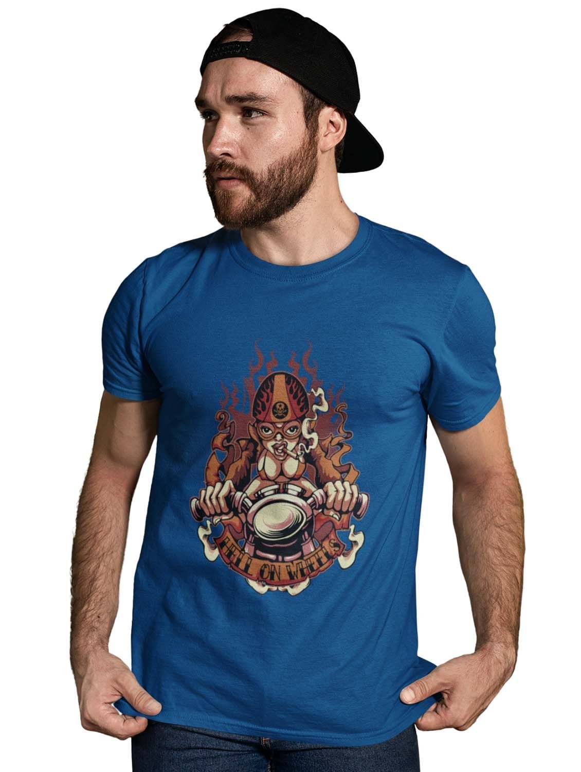 Tattooded Cranium Blue Round Neck Cotton Half Sleeved T-Shirt with Printed Graphics
