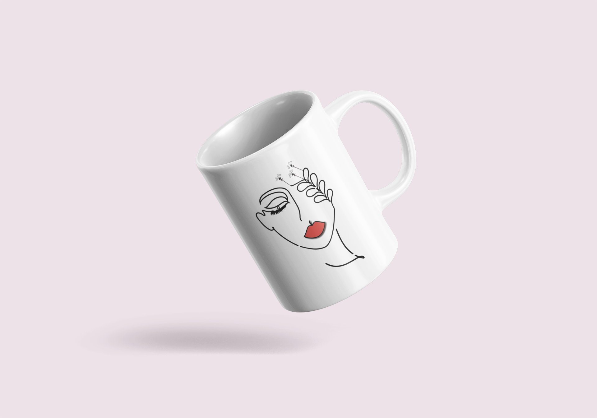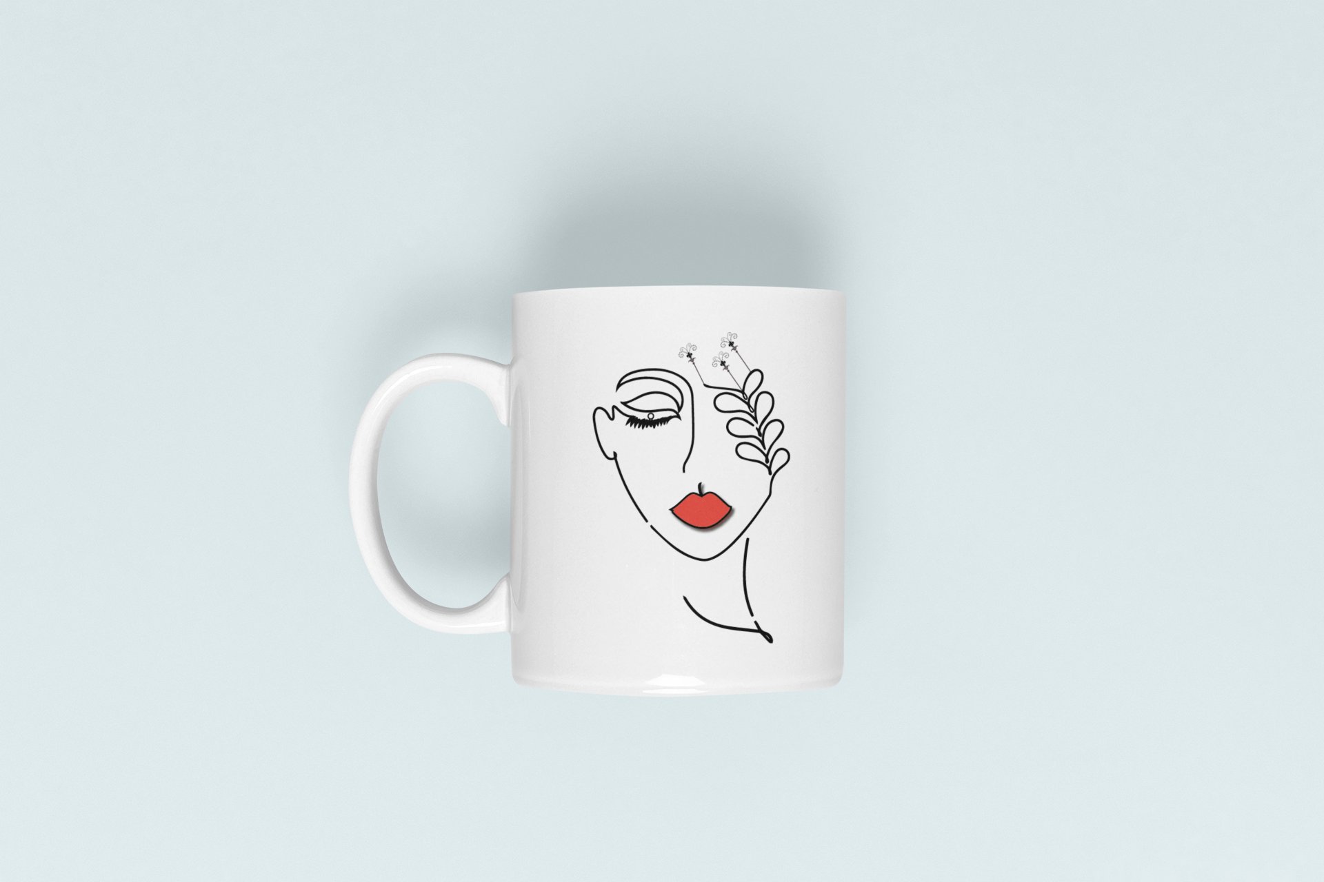 Women with flower - line art themed printed ceramic white coffee and tea mugs/ cups