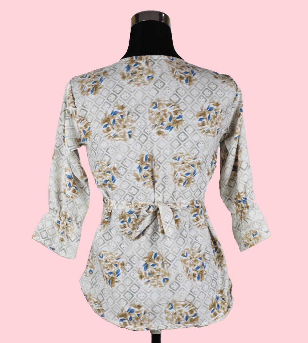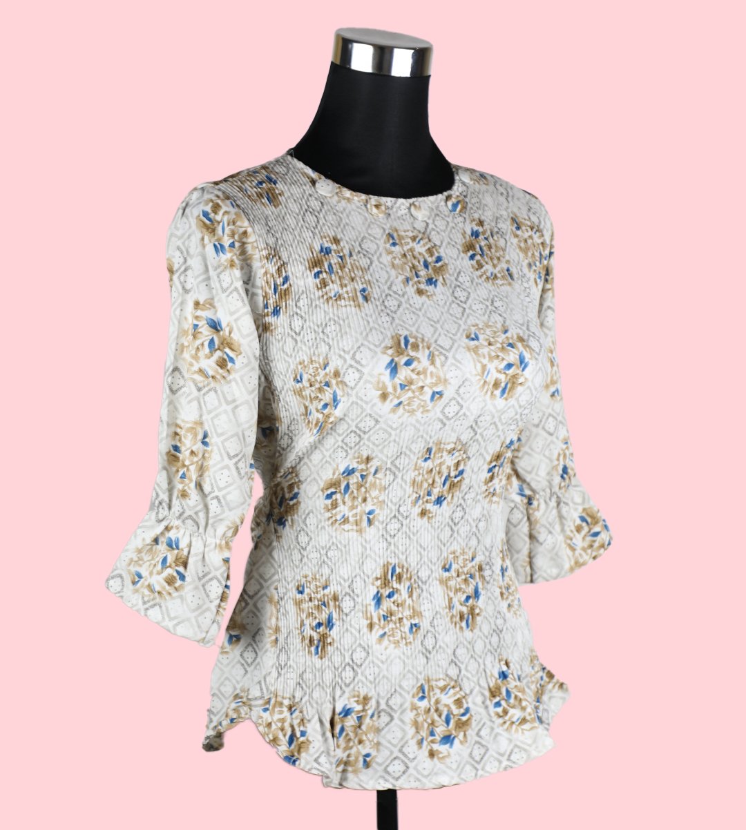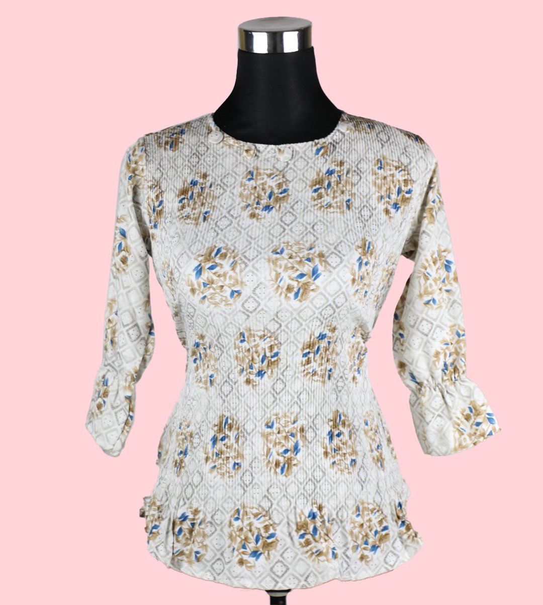 Women's Cream Top with Golden Floral Print - Timeless Elegance