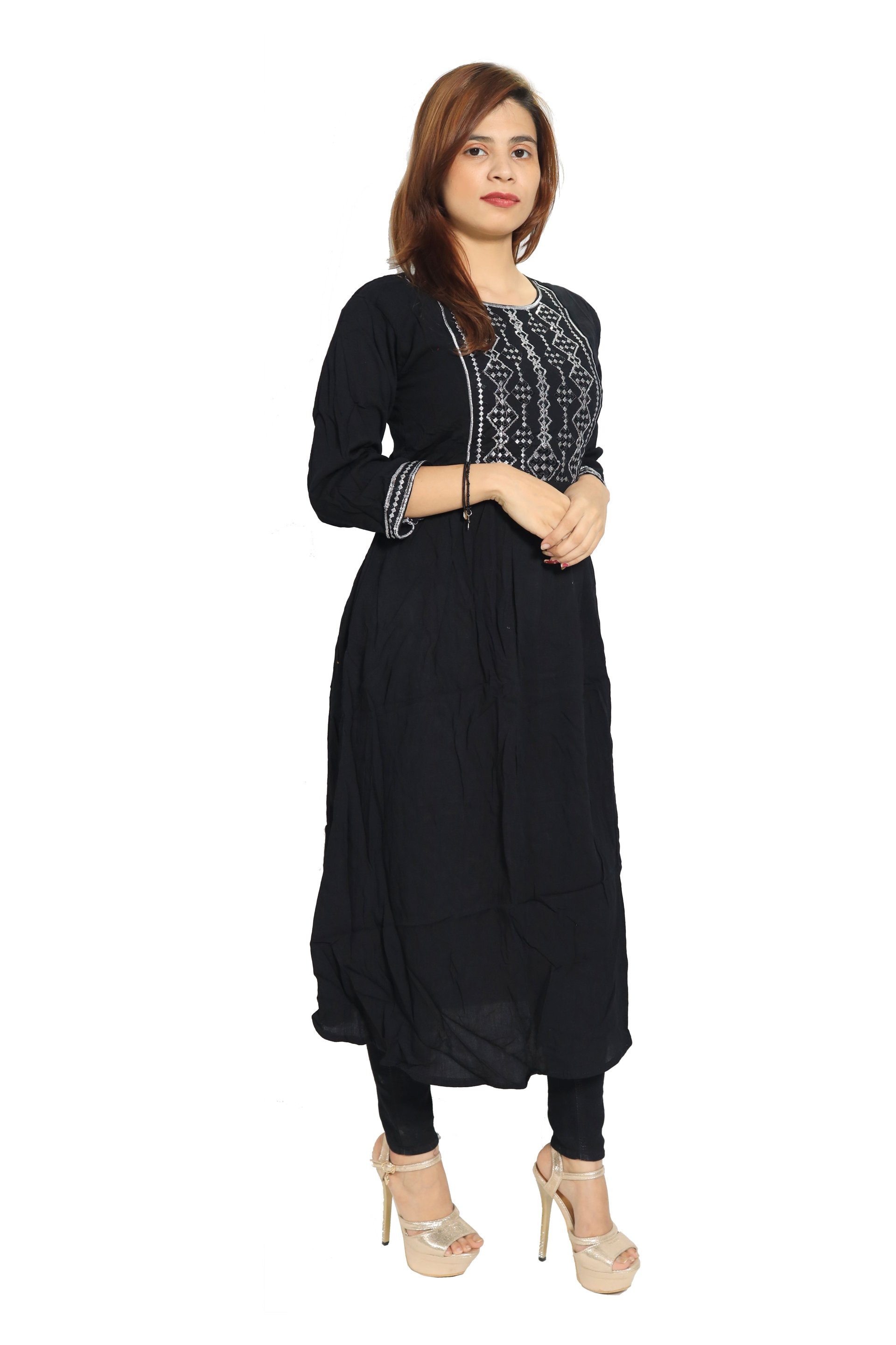 Women loves to wear kurtis of any age group. The fashion is not only limited upto married women but also to the teenagers. For any traditional day, poojas or any religious program, kurtis are mostly used to wear by ladies which gives positive, ritualistic and ceremonial vibes. The recognization of kurtis is still going on in 21st century. So, We have brought you a full collection of embroidery kurtis which is made of Rayon and designed for you plesant and comfy.
