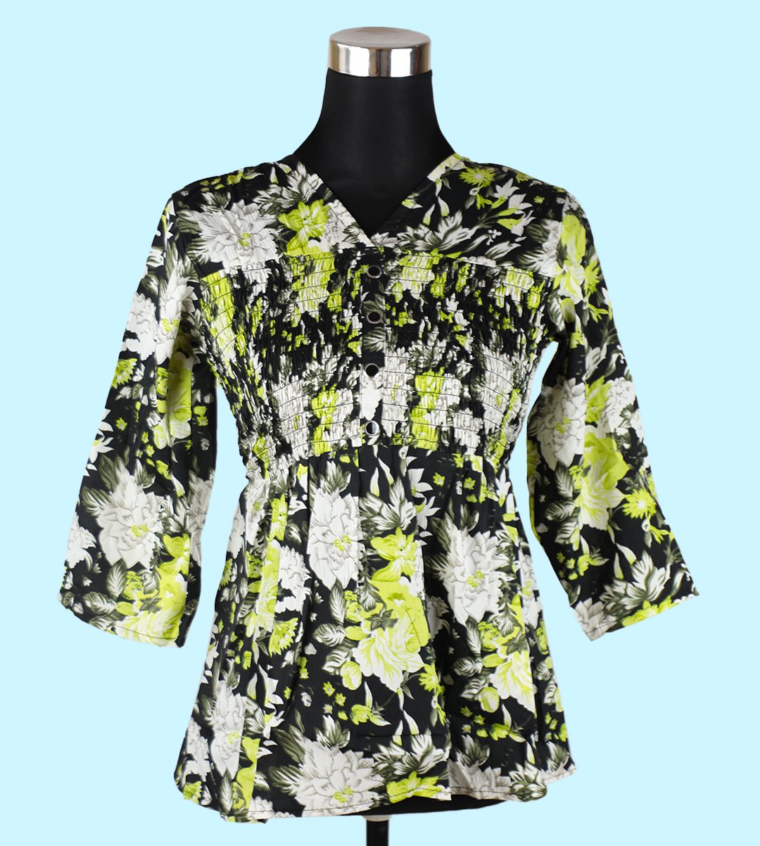 Revitalize your wardrobe with our Women's Floral V-Neck Top in Florescent Green, a chic and vibrant addition to your style. This top showcases a classic V-neck design and is tailored for a regular fit, making it a perfect choice for various occasions. Crafted from soft Rayon fabric, this top offers comfort and style in one. The top is adorned with a captivating floral pattern, featuring shades of Green, White, and Yellow, creating a stunning and eye-catching look.