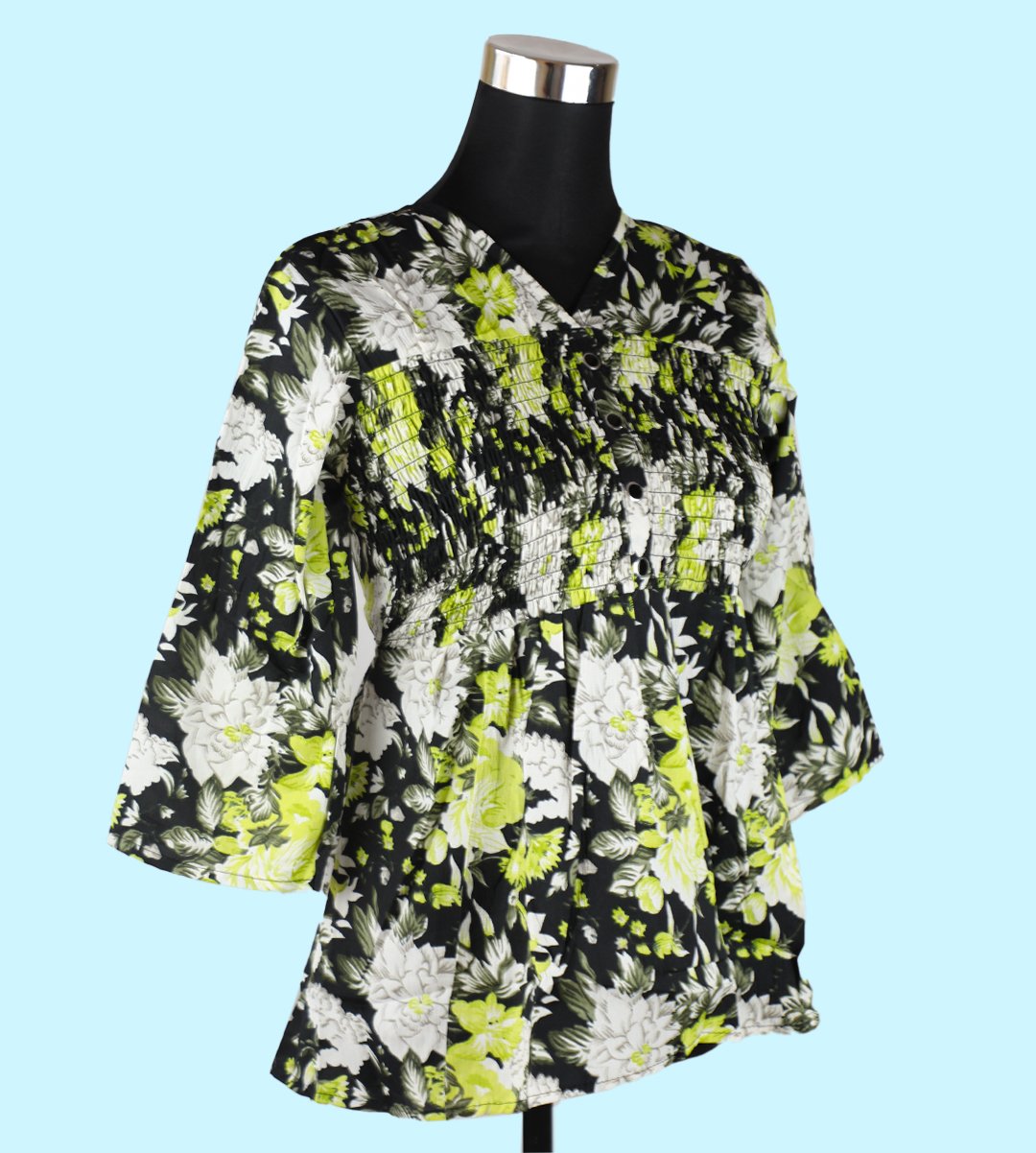 Women's Floral V-Neck Top in Florescent Green - Stylish and Vibrant Fashion Choice
