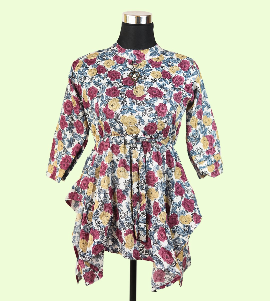 Enhance your wardrobe with our Women's Maroon Floral Round Neck Top, featuring a dominant maroon floral pattern with a cream mix print, exuding timeless elegance. This top showcases a classic round neck design and offers a regular fit, making it versatile for various occasions. Crafted from soft Rayon fabric, this top offers both style and breathability. The captivating floral and cream mix pattern adds a unique and captivating touch to your look.