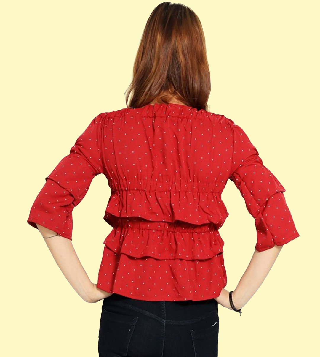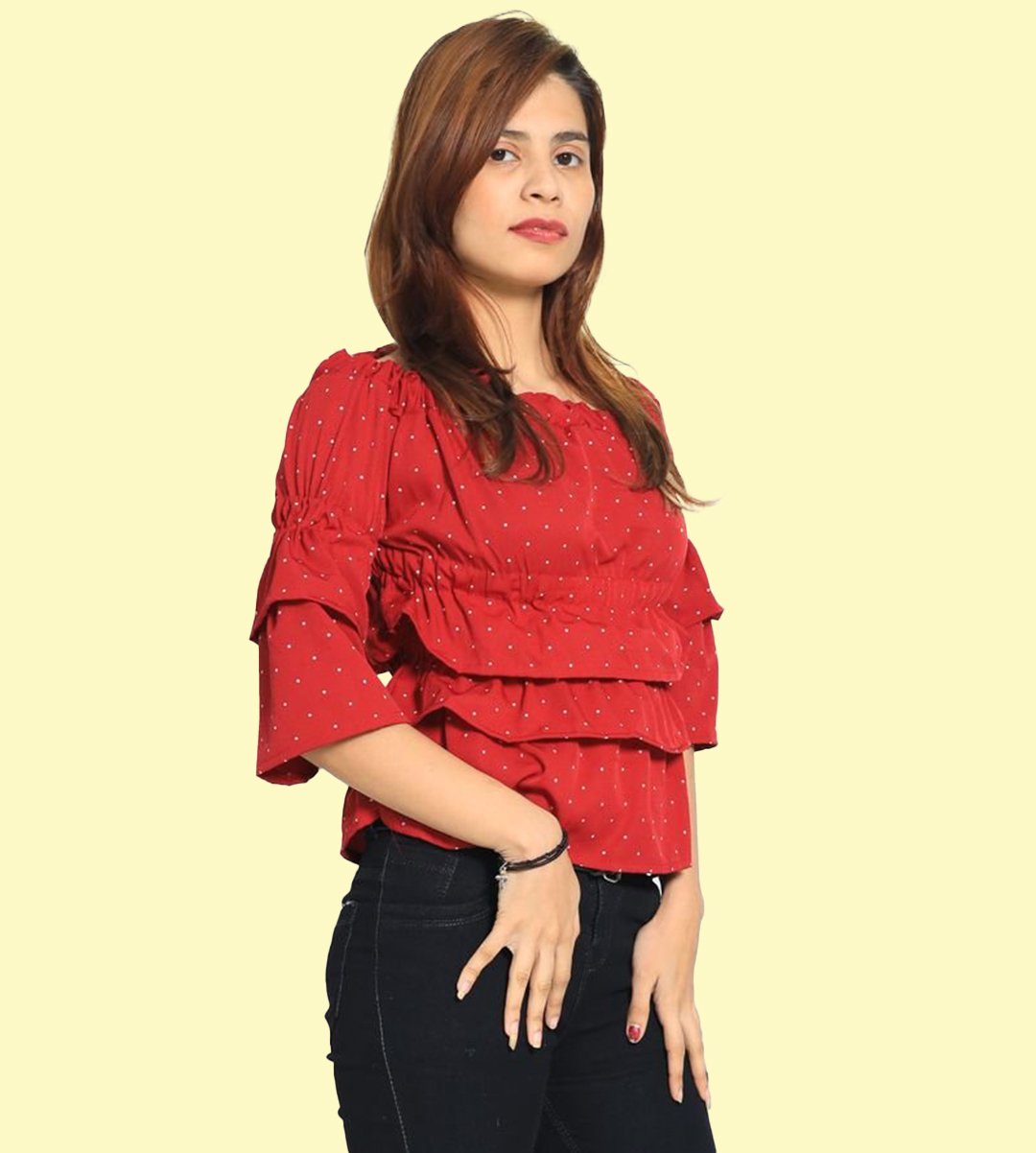 Women loves to wear top of any age groups. The fashion is not only limited upto young girls / teenagers but some married women also love to wear it. The recognization of top is very much popular in 21st century. It is used by the modernized ladies. Easy to wear. It looks good with jeans or jeggings. We have brought you a full collection of floral designs printed tops to choose from. This is made up of Rayon and designed for your plesant and cozy.