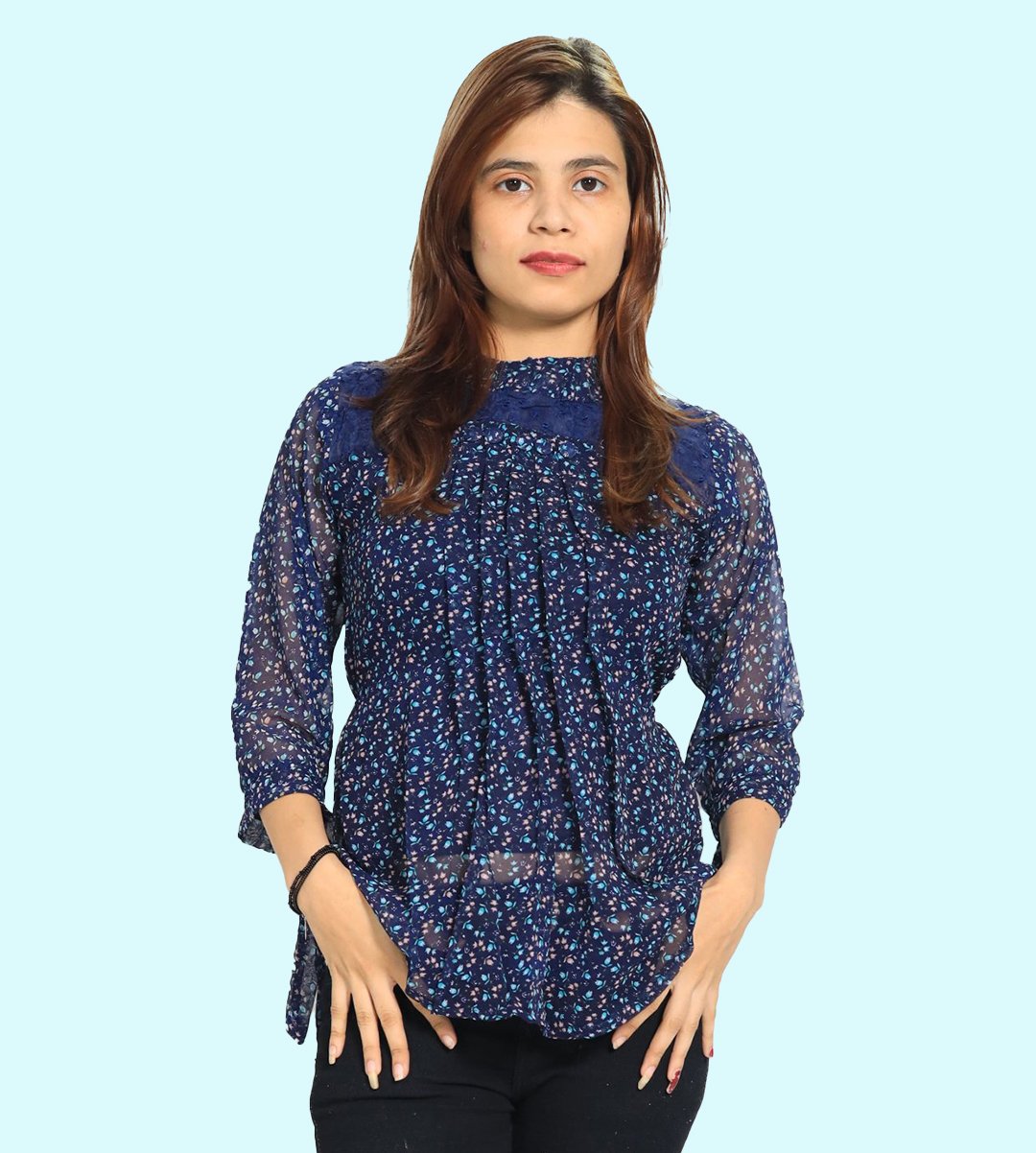 Women loves to wear top of any age groups. The fashion is not only limited upto young girls / teenagers but some married women also love to wear it. The recognization of top is very much popular in 21st century. It is used by the modernized ladies. Easy to wear. It looks good with jeans or jeggings. We have brought you a full collection of floral designs printed top to choose from. This is made up of Rayon and designed for your plesant and cozy.