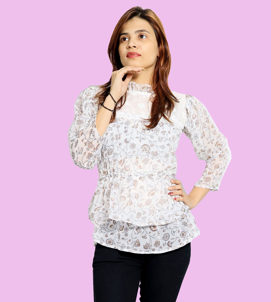 Women loves to wear top of any age groups. The fashion is not only limited upto young girls / teenagers but some married women also love to wear it. The recognization of top is very much popular in 21st century. It is used by the modernized ladies. Easy to wear. It looks good with jeans or jeggings. We have brought you a full collection of floral designs printed top to choose from. This is made up of Rayon and designed for your plesant and cozy.