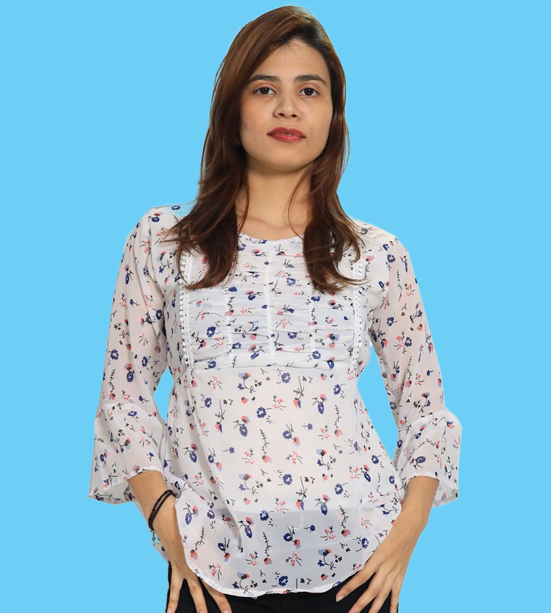 Women loves to wear top of any age groups. The fashion is not only limited upto young girls / teenagers but some married women also love to wear it. The recognization of top is very much popular in 21st century. It is used by the modernized ladies. Easy to wear. It looks good with jeans or jeggings. We have brought you a full collection of floral designs printed top to choose from. This is made up of Rayon and designed for your plesant and cozy.