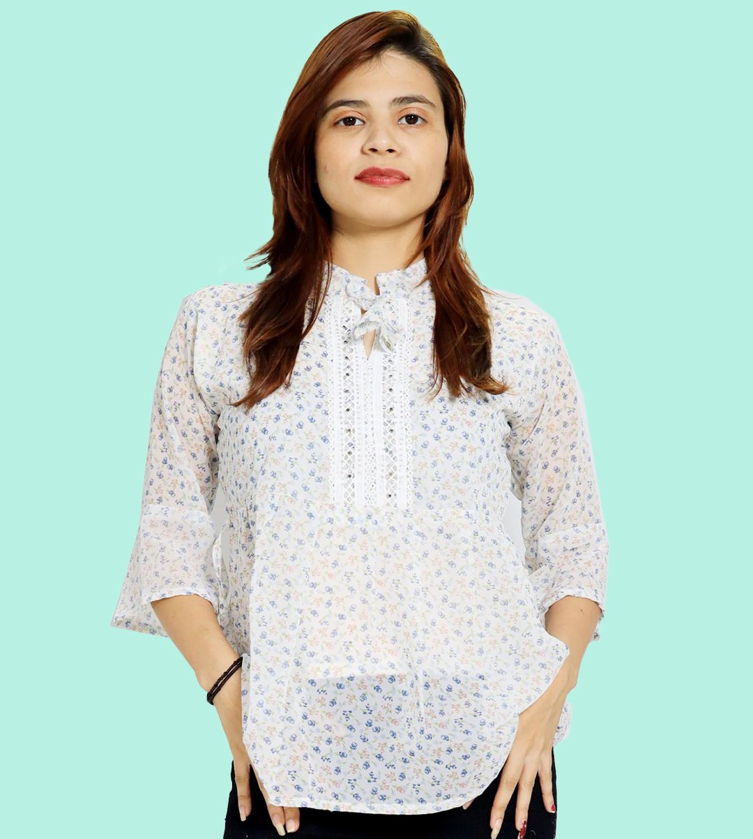 Blue buds floral womens printed top (white) - Made up of Rayon for your plesant and cozy