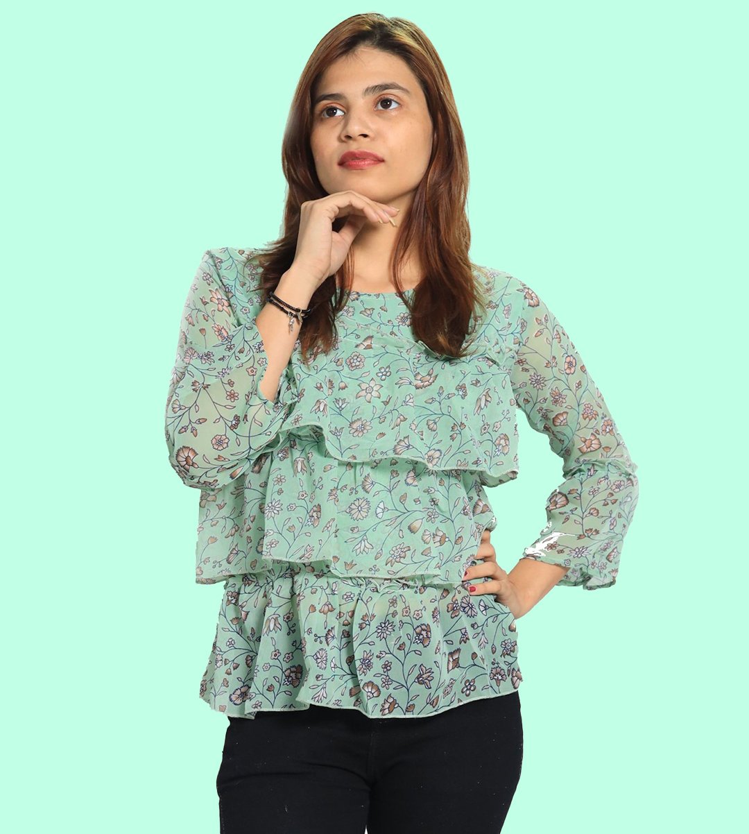Women loves to wear top of any age groups. The fashion is not only limited upto young girls / teenagers but some married women also love to wear it. The recognization of top is very much popular in 21st century. It is used by the modernized ladies. Easy to wear. It looks good with jeans or jeggings. We have brought you a full collection of floral designs printed top to choose from. This is made up of Rayon and designed for your plesant and cozy.