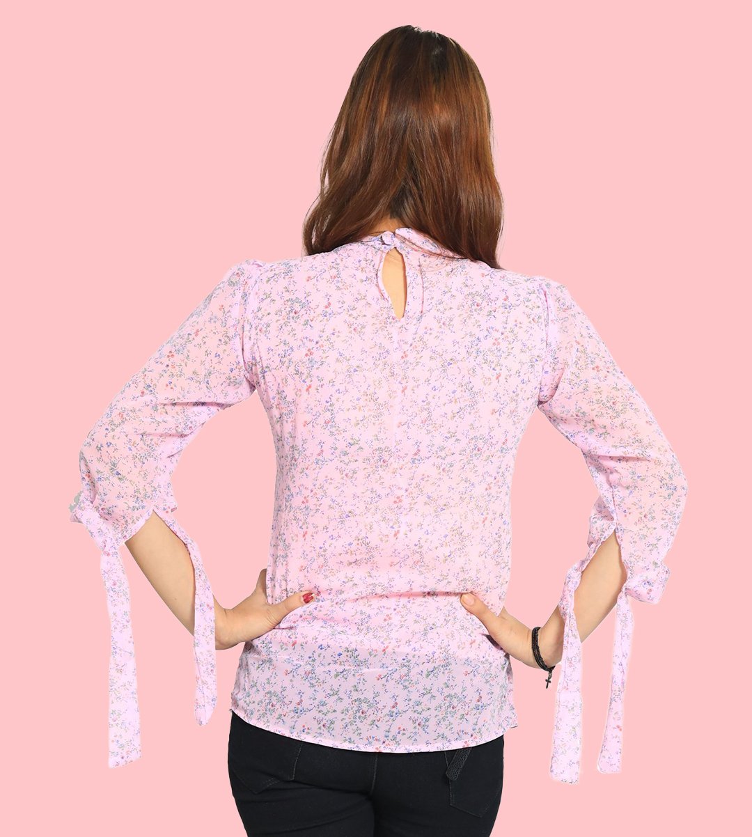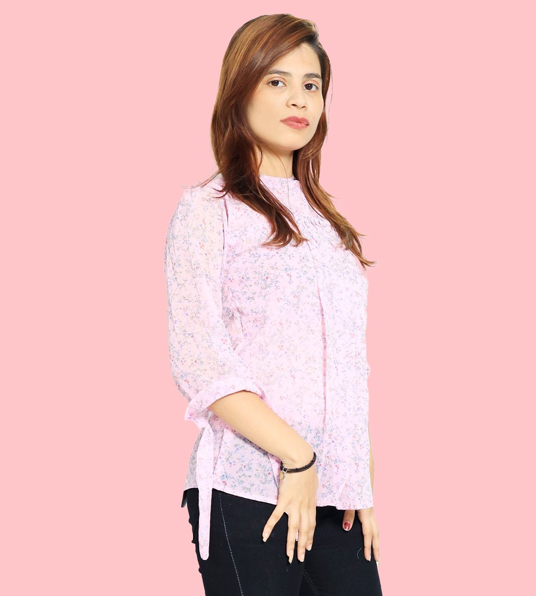 Orange Blue Flowers floral printed womens top (pink top) - Made up of Rayon for your plesant and cozy